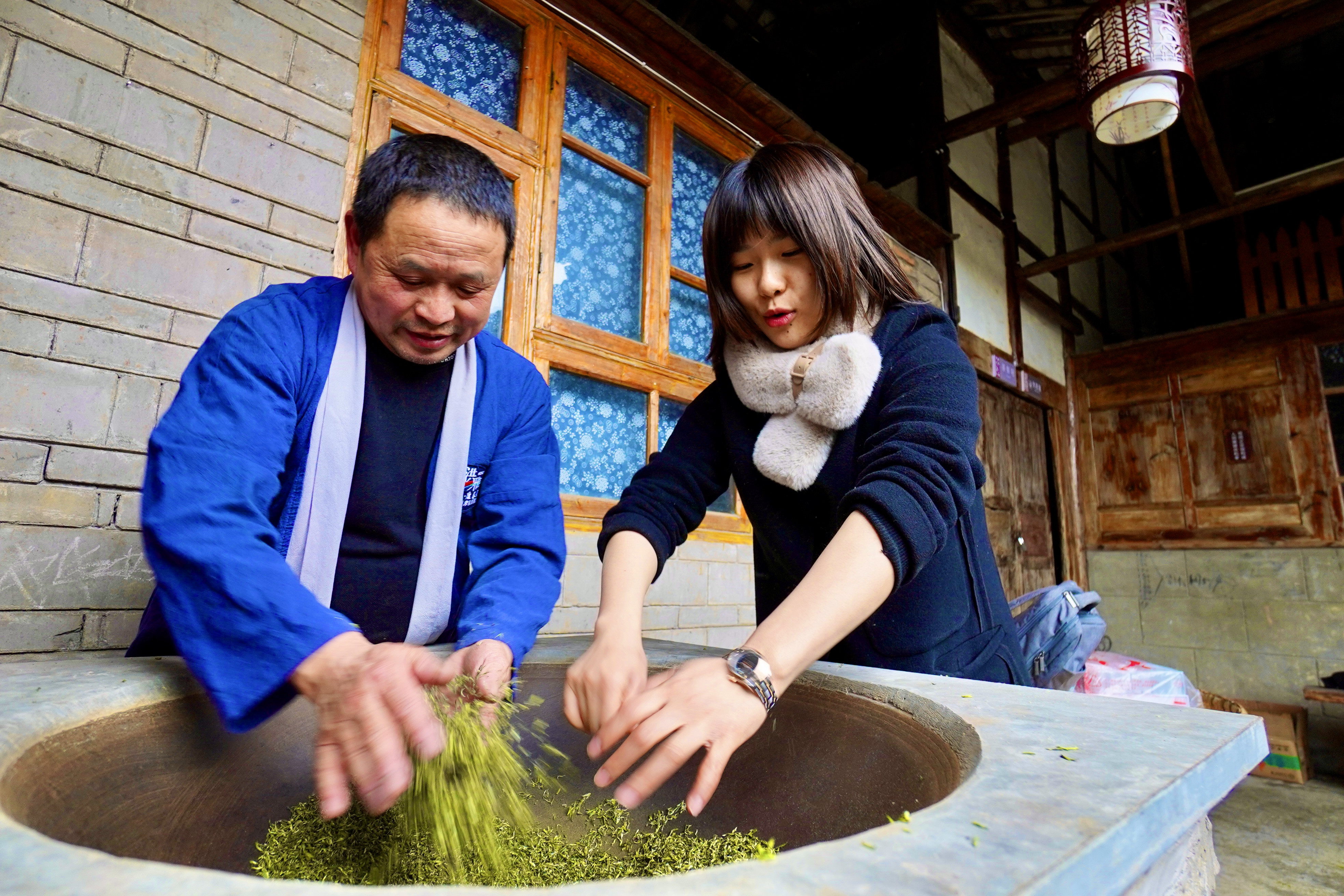除了种茶、采茶,李时贵还擅长炒茶。只见他两手在铁锅里翻炒,额上渗出细汗,手掌也因受热而略微发红。“如果温度控制恰当,茶的清香就出来了。如果控制不好,茶的香味和色泽就会受影响。”李时贵说,村里很多茶农都是白天采茶,晚上炒茶,第二天凌晨赶早市卖茶,不负农时不负春,辛苦但是干劲十足。