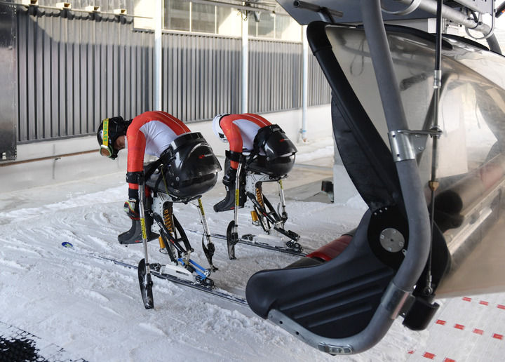 2月28日,运动员在延庆赛区国家高山滑雪中心乘坐缆车。新华社记者张晨霖摄