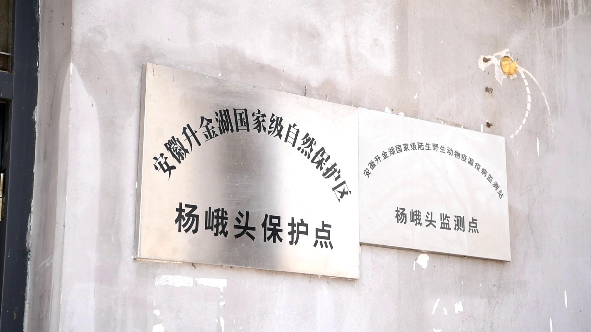 这是安徽升金湖国家级自然保护区杨峨头保护点的标牌。新华社记者金剑 摄