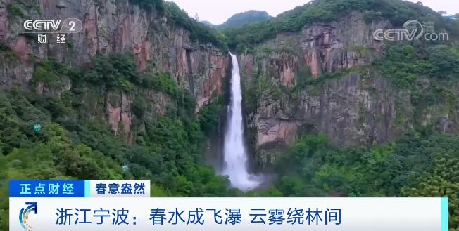 浙江宁波雪窦山是浙东四明山支脉的最高峰,海拔800米。春天来临,春水穿越林间坠下陡崖,形成飞瀑奇观。溅起的水雾弥漫在山林,让逐渐转绿的山林云雾缭绕、美景迷人。