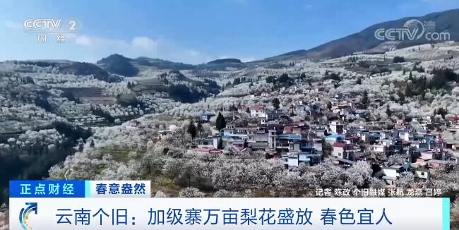 在云南红河哈尼族彝族自治州个旧市加级寨,远远望去,万亩梨花绵延起伏,美得仿若人间仙境。一团团、一簇簇的梨花层叠相拥,在微风中绰约摇曳,展现春天最灵动的色彩,吸引游客纷至沓来。