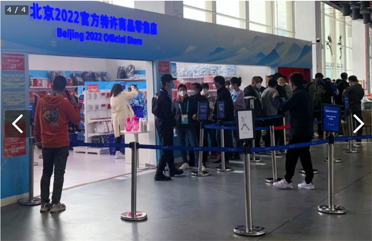 《朝日新闻》记者拍摄冬奥特许商店门前的购买长龙。图片来源:网络截图