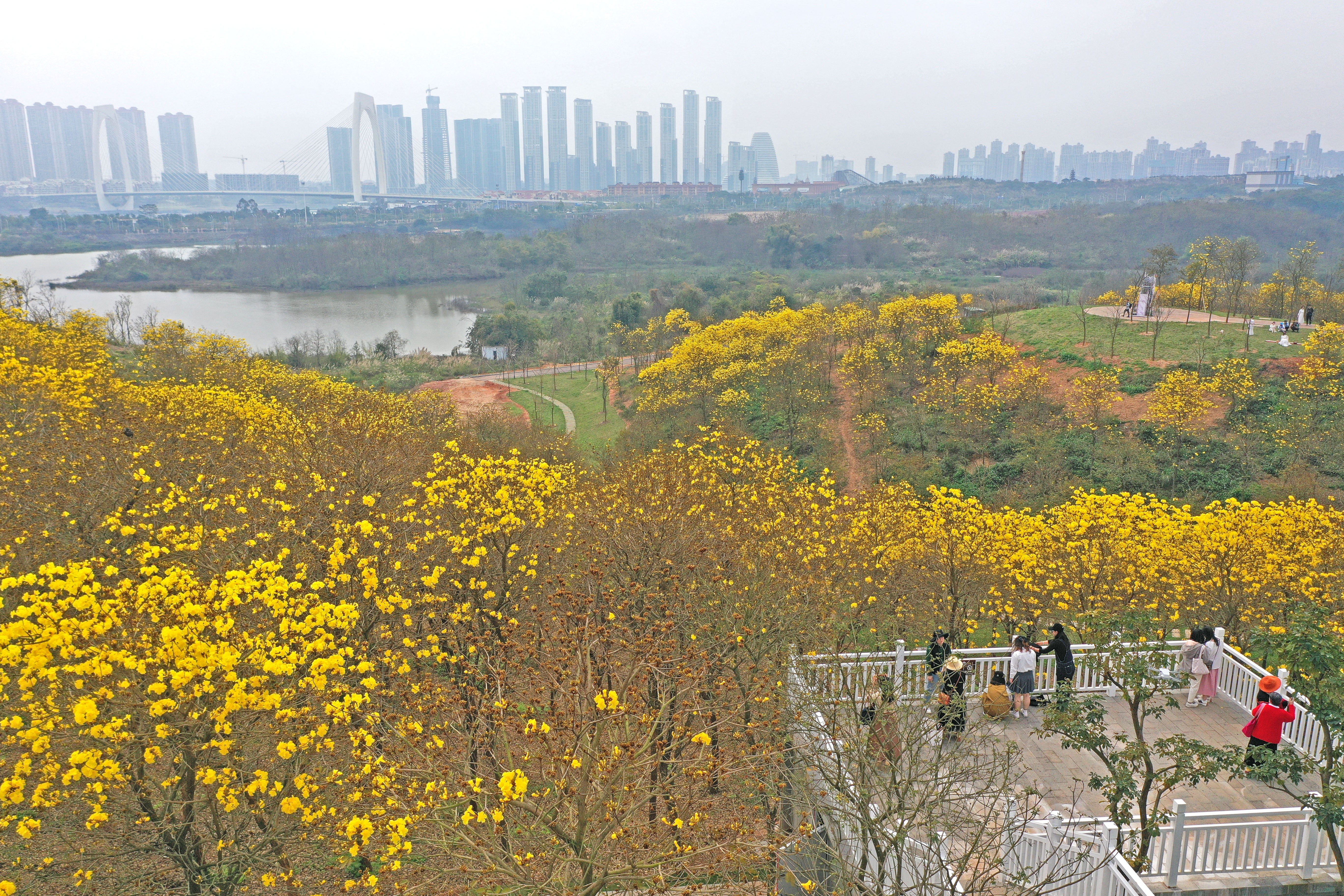 新华社照片,南宁,2022年3月11日 春暖花开醉游人 游客在广西南宁市青秀山风景区赏花(3月11日摄,无人机照片)。 春暖花开时节,人们外出踏春赏花,感受浓浓的春意。 新华社记者 周华 摄