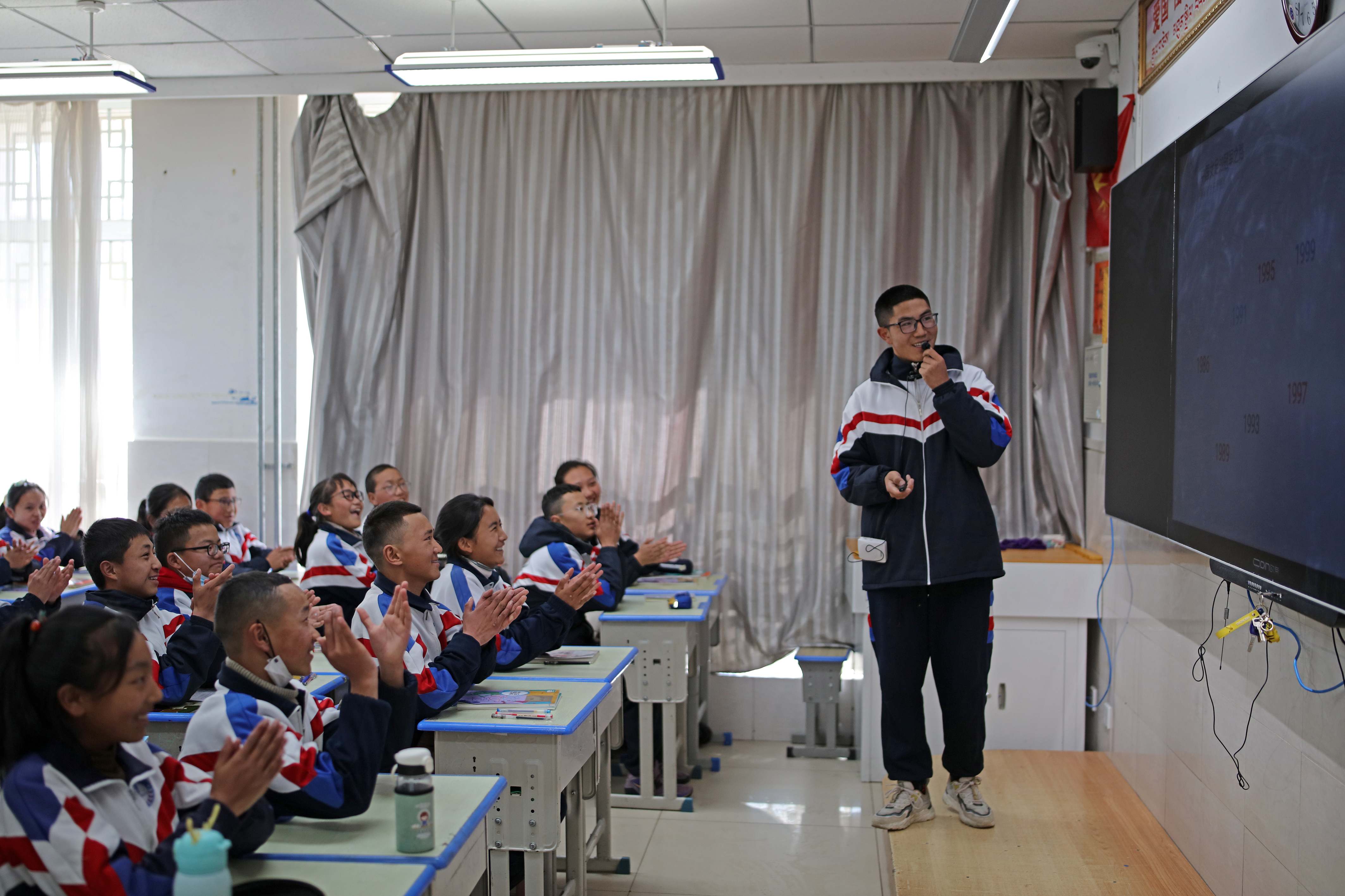 3月10日,拉萨江苏实验中学初二6班的同学们在“跨越新学期”主题班会上。新华社记者姜帆 摄