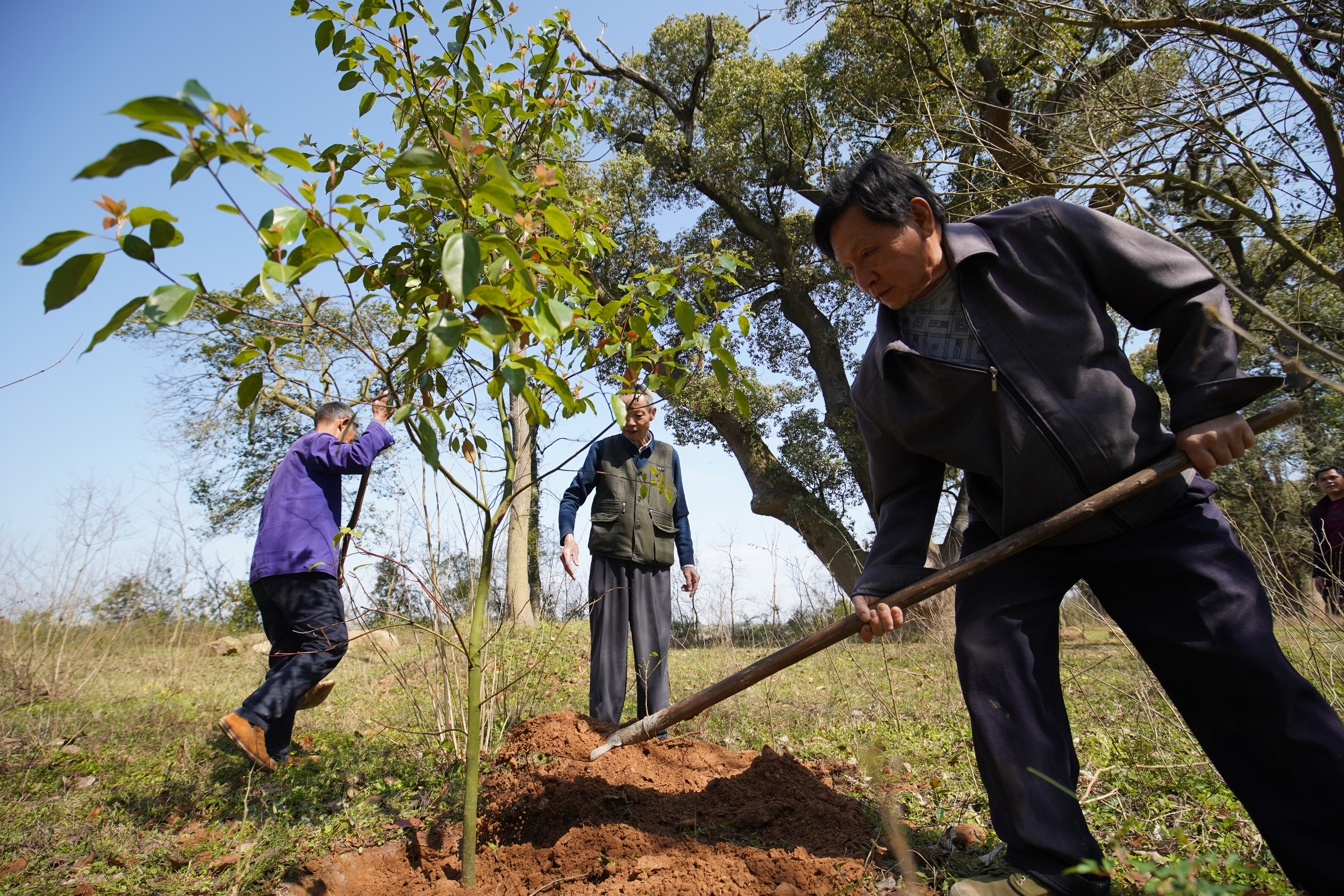 新华社照片,南昌,2022年3月11日 为了守护一片林 这个村立下族规 康昭训(中)和村民一起在金滩古樟林内植树(3月10日摄)。 (配本社同题文字稿) 新华社记者 余刚 摄
