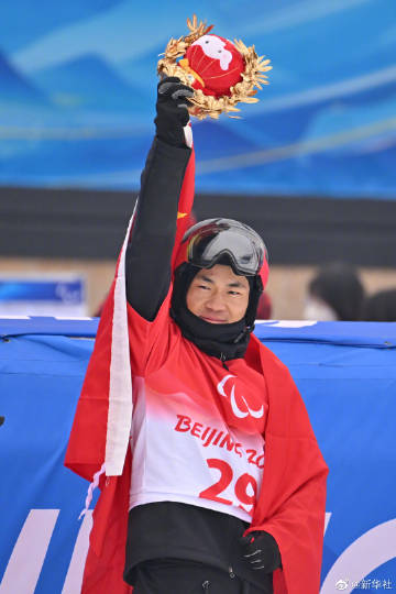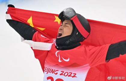 #中国队冬残奥会第13金#【#武中伟夺得残奥单板滑雪男子坡面回转LL1级金牌#】在3月11日结束的北京冬残奥会单板滑雪男子坡面回转LL1级比赛中,中国选手武中伟夺得金牌。(新华社冬残奥报道团队)