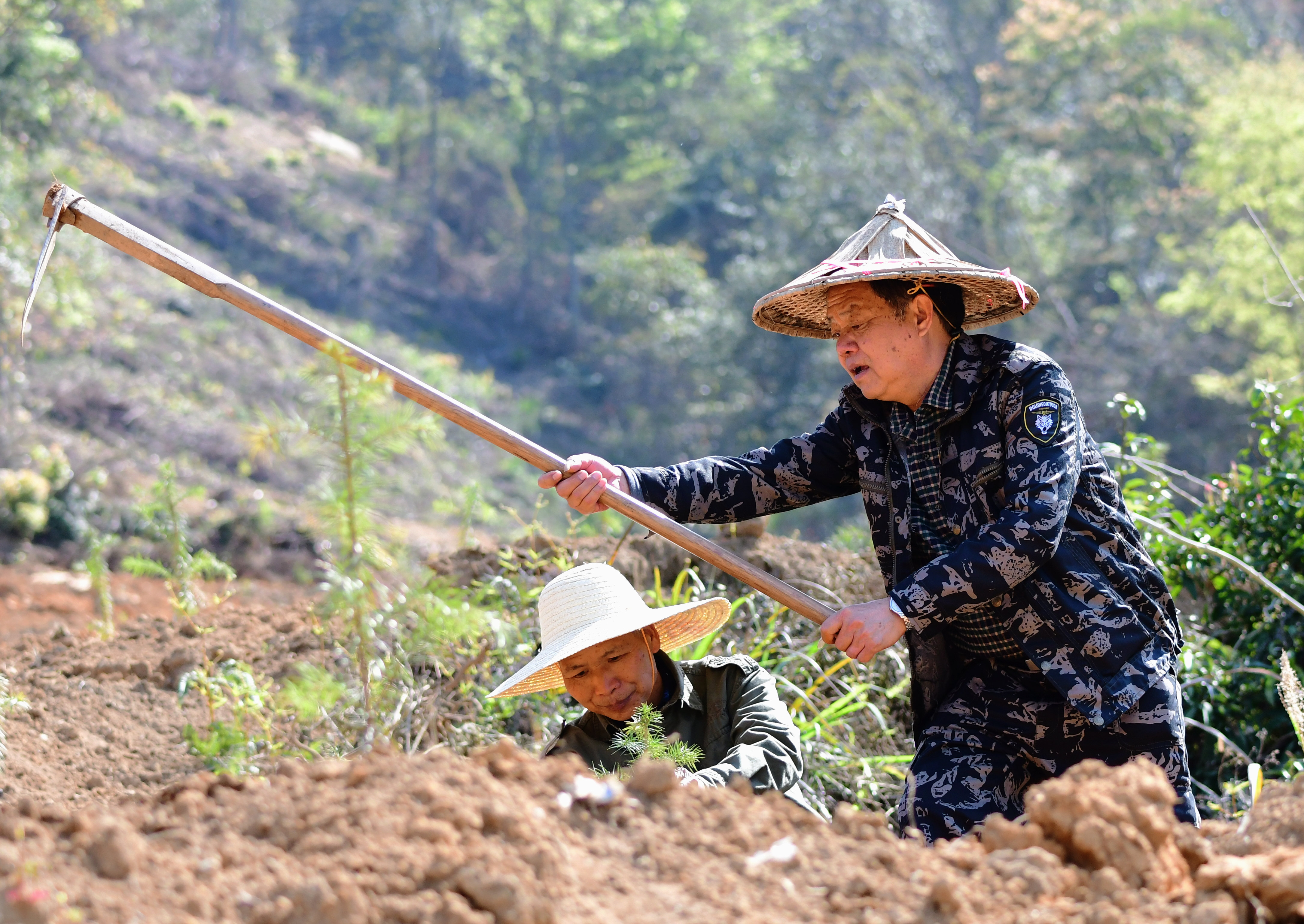 新华社照片,安溪(福建),2022年3月11日 40多年,1万多亩!黄秋水的“绿化情缘” 3月11日,黄秋水(右)和同事种植杉树苗。 59岁的黄秋水是福建省安溪丰田国有林场的一名普通护林员。1978年,安溪丰田国有林场开始筹建,黄秋水只身一人从县城来到偏远林区,把青春奉献给这片林场。 40多年间,作为守护者和见证者,巡山、植树、救火、管护,黄秋水走遍了林场的每个山头每处地块。他亲手栽植林木面积上万亩,被授予“全国绿化劳动模范”“全国优秀护林员”等荣誉称号。当年亲手种下的树苗,如今已长成大树。“明年我就要退休了,可越临近退休,心中就越放不下这片山林。”黄秋水说。 新华社记者 魏培全 摄