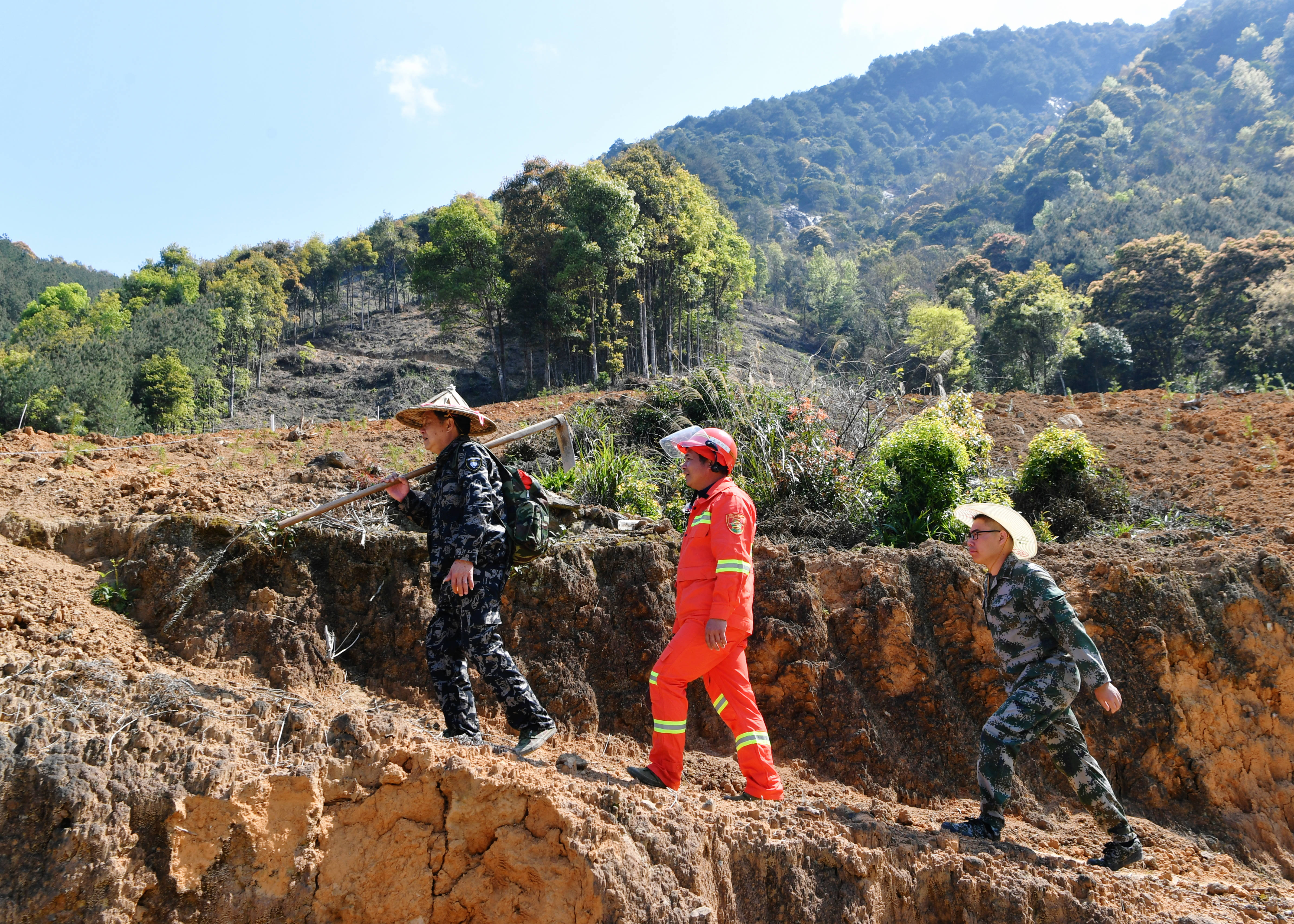 新华社照片,安溪(福建),2022年3月11日 40多年,1万多亩!黄秋水的“绿化情缘” 3月11日,黄秋水(左一)和同事带着装备,走向山头种植杉树苗。 59岁的黄秋水是福建省安溪丰田国有林场的一名普通护林员。1978年,安溪丰田国有林场开始筹建,黄秋水只身一人从县城来到偏远林区,把青春奉献给这片林场。 40多年间,作为守护者和见证者,巡山、植树、救火、管护,黄秋水走遍了林场的每个山头每处地块。他亲手栽植林木面积上万亩,被授予“全国绿化劳动模范”“全国优秀护林员”等荣誉称号。当年亲手种下的树苗,如今已长成大树。“明年我就要退休了,可越临近退休,心中就越放不下这片山林。”黄秋水说。 新华社记者 魏培全 摄