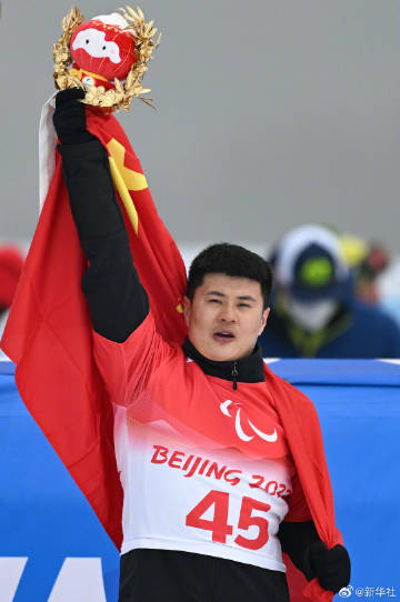 #中国队冬残奥会第14金#【#孙奇夺得残奥单板滑雪男子坡面回转LL2级冠军#】在3月11日结束的北京冬残奥会残奥单板滑雪男子坡面回转LL2级比赛中,中国选手孙奇夺得金牌。(新华社冬残奥报道团队)