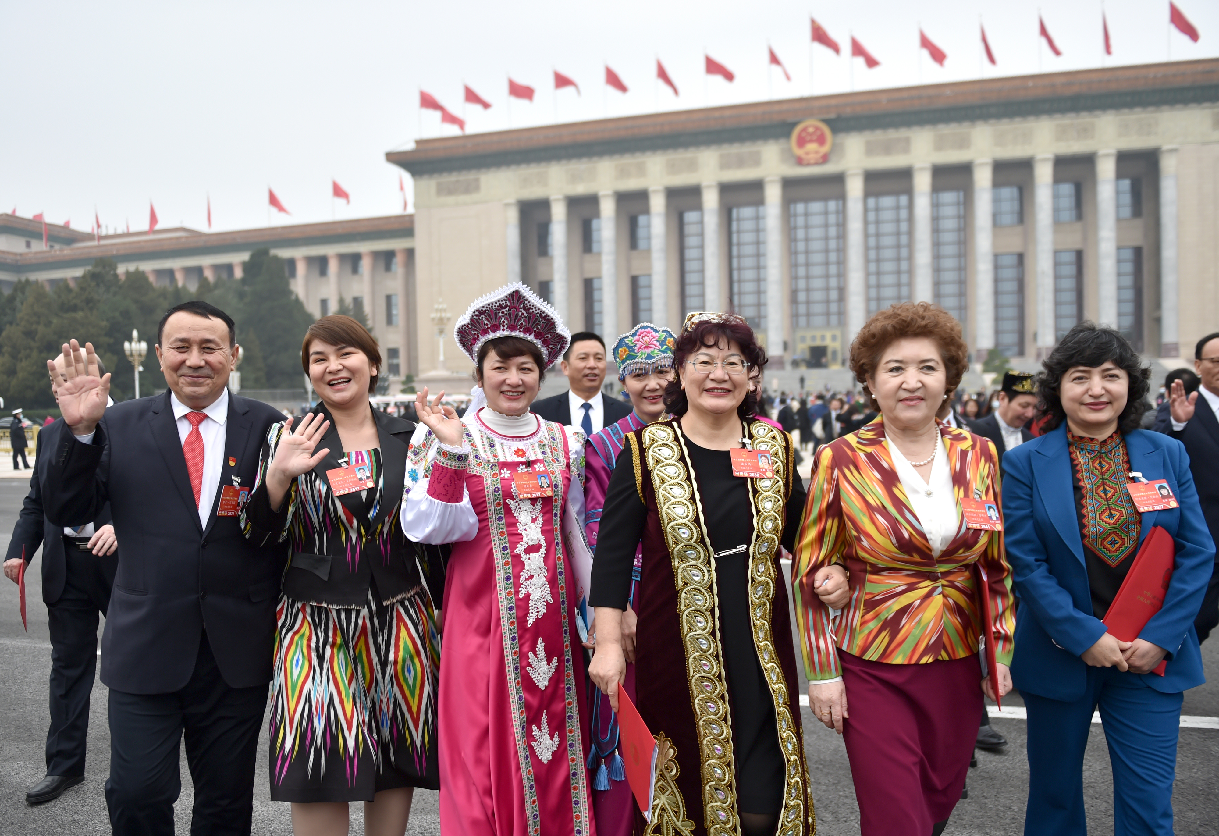 新华社照片,北京,2022年3月11日 十三届全国人大五次会议在北京闭幕 3月11日,第十三届全国人民代表大会第五次会议在北京人民大会堂闭幕。这是闭幕会后,代表走出人民大会堂。 新华社记者 陈钟昊 摄
