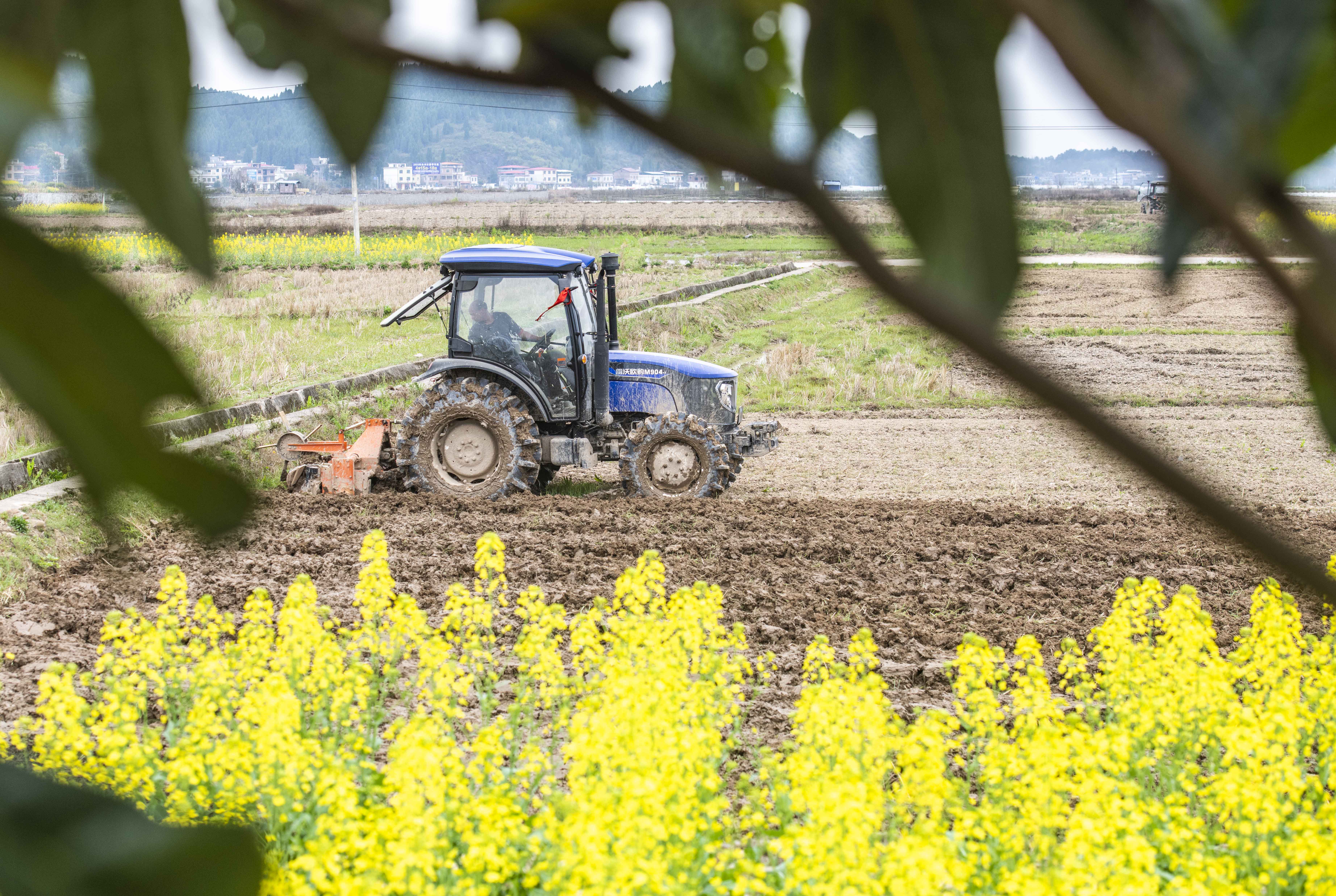 新华社照片,永州(湖南),2022年3月11日 春光好 农事忙 3月11日,在湖南省永州市道县梅花镇斯屋村,农民驾驶农机翻耕农田。 春暖时节,神州大地春耕备耕如火如荼,乡村田野一派农忙景象。 新华社发(蒋克青摄)