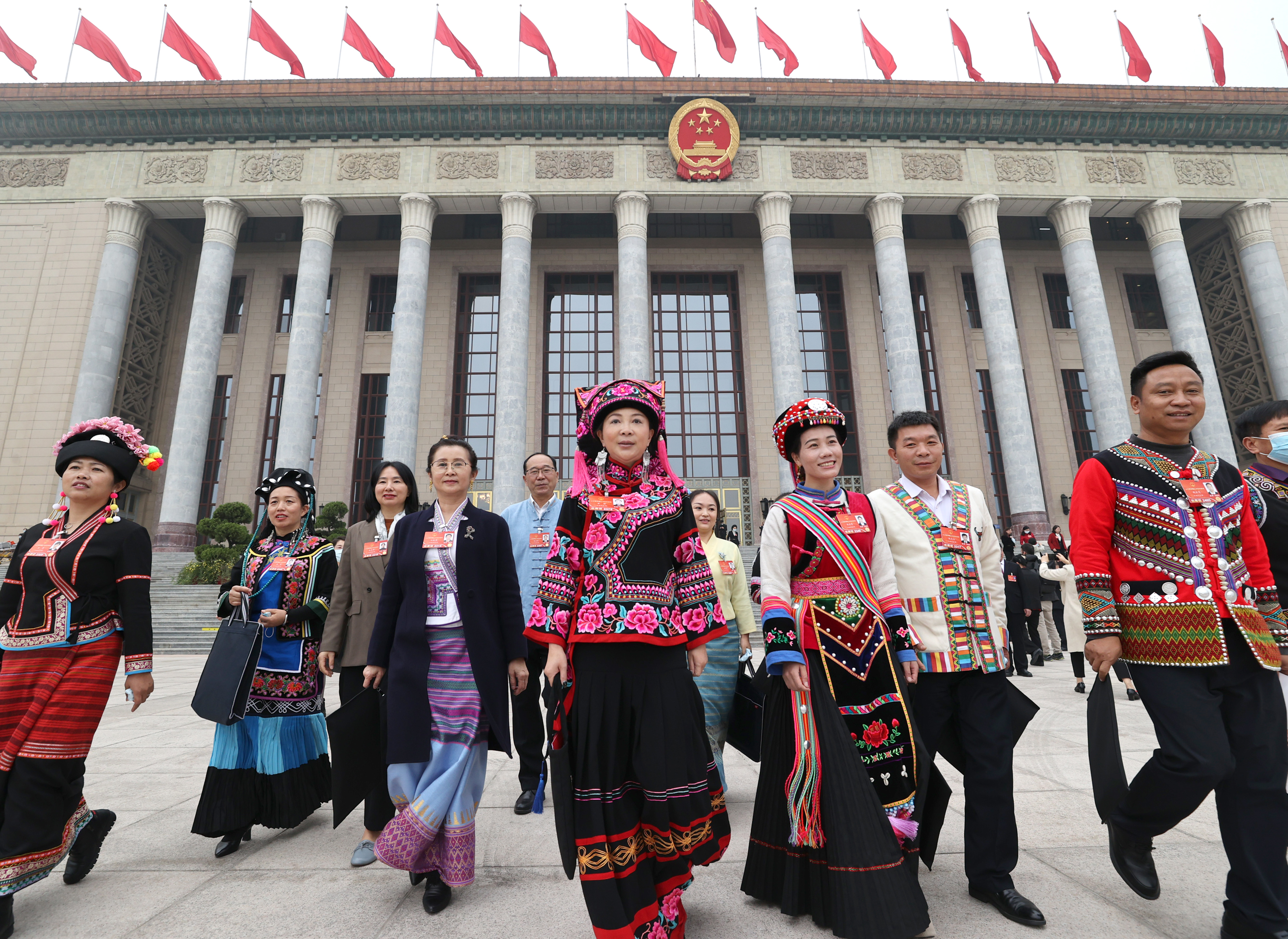 新华社照片,北京,2022年3月11日 十三届全国人大五次会议在北京闭幕 3月11日,第十三届全国人民代表大会第五次会议在北京人民大会堂闭幕。这是闭幕会后,代表走出人民大会堂。 新华社记者 金立旺 摄