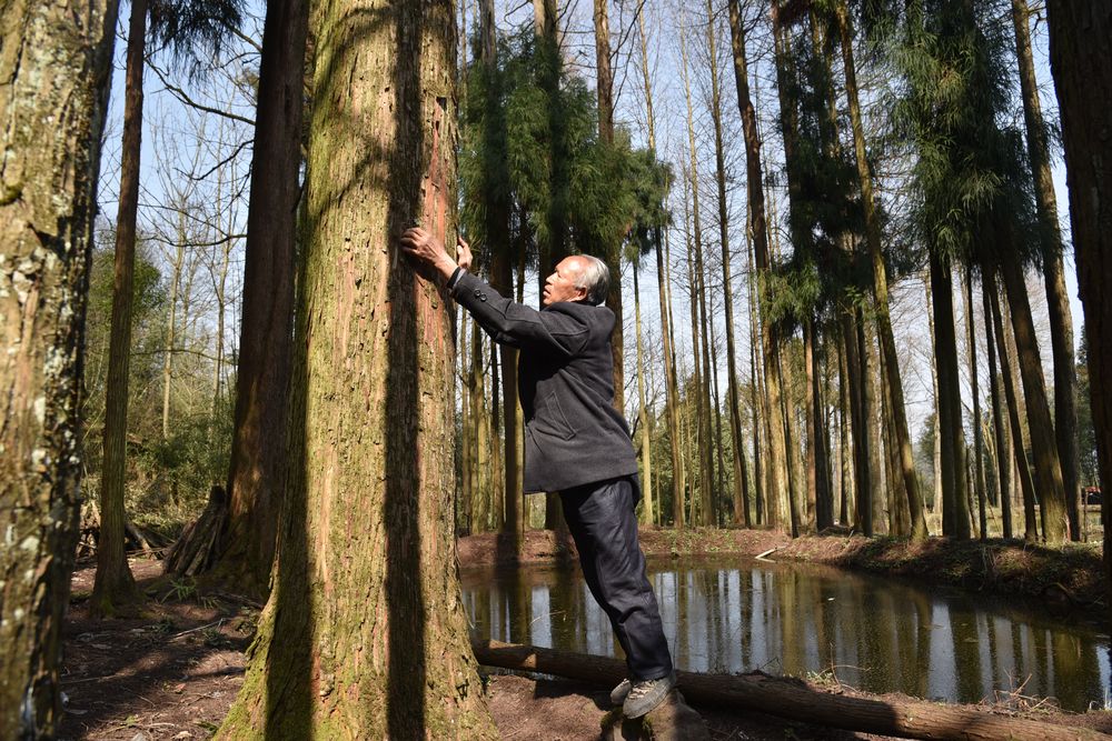 王华文当年种下的小树苗,如今长成了参天大树。 新华社记者 李凡 摄