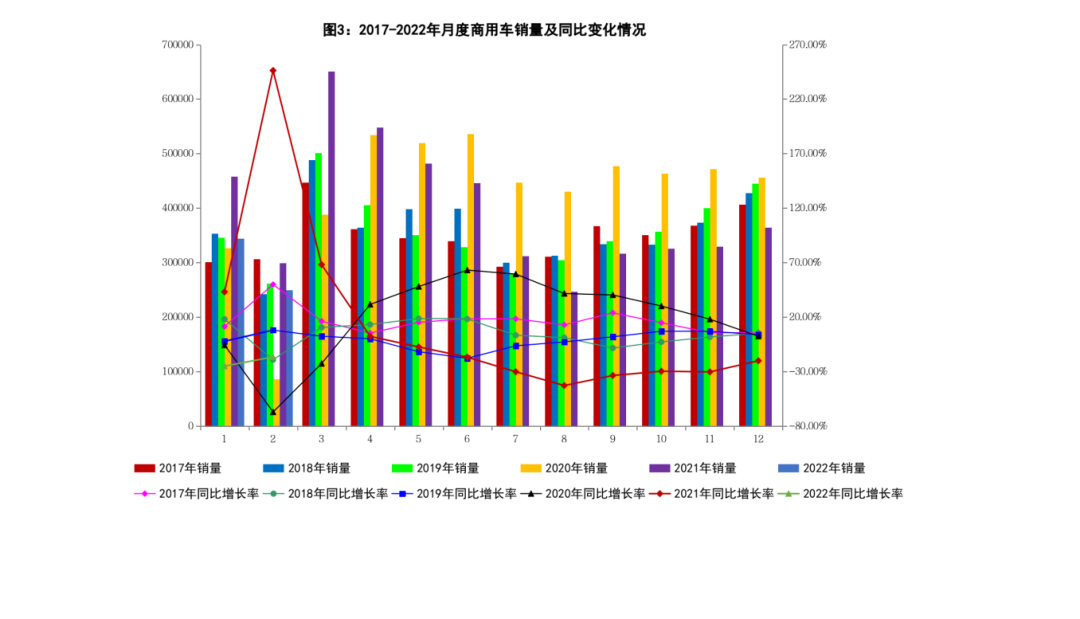 1-2月,商用车产销分别完成62.4万辆和59.4万辆,同比分别下降24.0%和21.7%。分车型看,货车产销分别完成57.0万辆和54.0万辆,同比分别下降25.0%和22.7%;客车产销均完成5.4万辆,同比分别下降10.8%和10.9%。