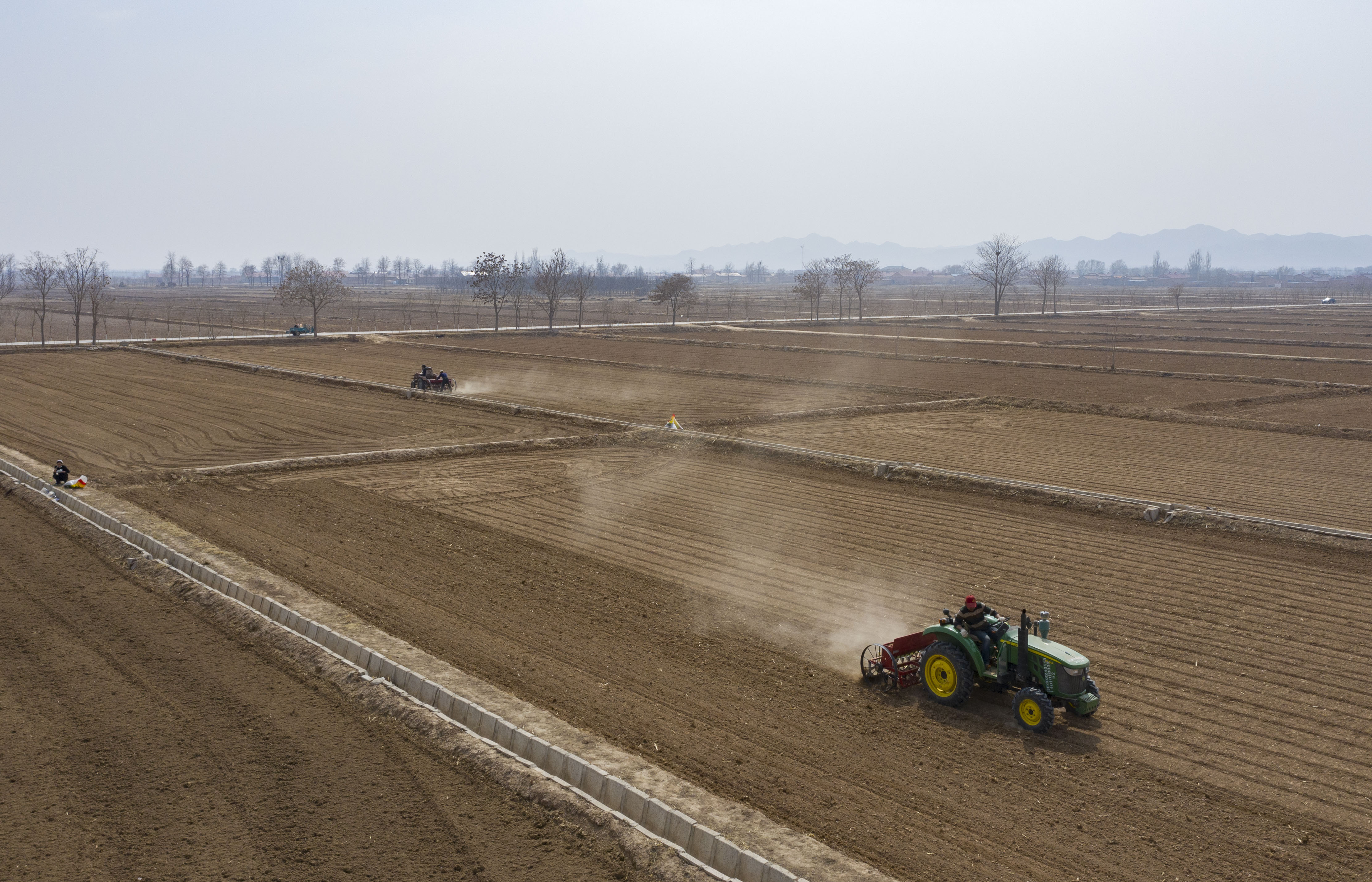 新华社照片,同心县(宁夏),2022年3月12日 宁夏同心:抢抓农时 播种小麦 在宁夏吴忠市同心县丁塘镇张滩村,农民驾驶播种机播种小麦(3月11日摄,无人机照片)。 时下正值春耕备耕时节,宁夏吴忠市同心县的农民抢抓农时,播种小麦。据了解,今年同心县春小麦种植面积预计在6万亩以上。同心县通过加强技术指导服务、调整种植结构、强化农资市场监管等方式,认真落实耕地保护目标责任制,保障粮食和重要农产品生产供给。 新华社记者 杨植森 摄
