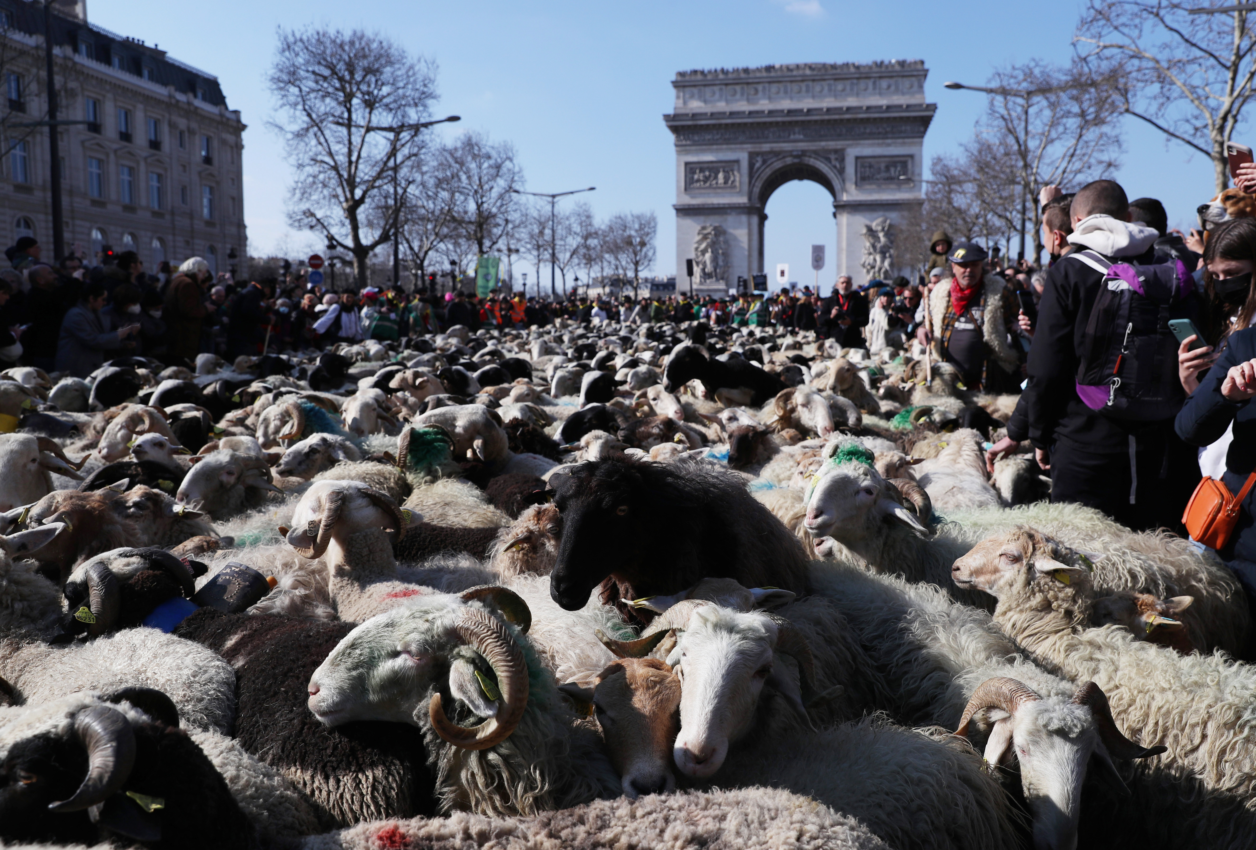 新华社照片,北京,2022年3月12日 (国际·一周看天下)巴黎:2022只绵羊亮相香街 3月6日,绵羊聚集在法国巴黎香榭丽舍大街上。 2022只绵羊当天出现在法国巴黎著名的香榭丽舍大街上,吸引众多市民前来围观。这场别开生面的活动是第58届法国国际农业博览会的闭幕活动。 新华社记者 高静 摄