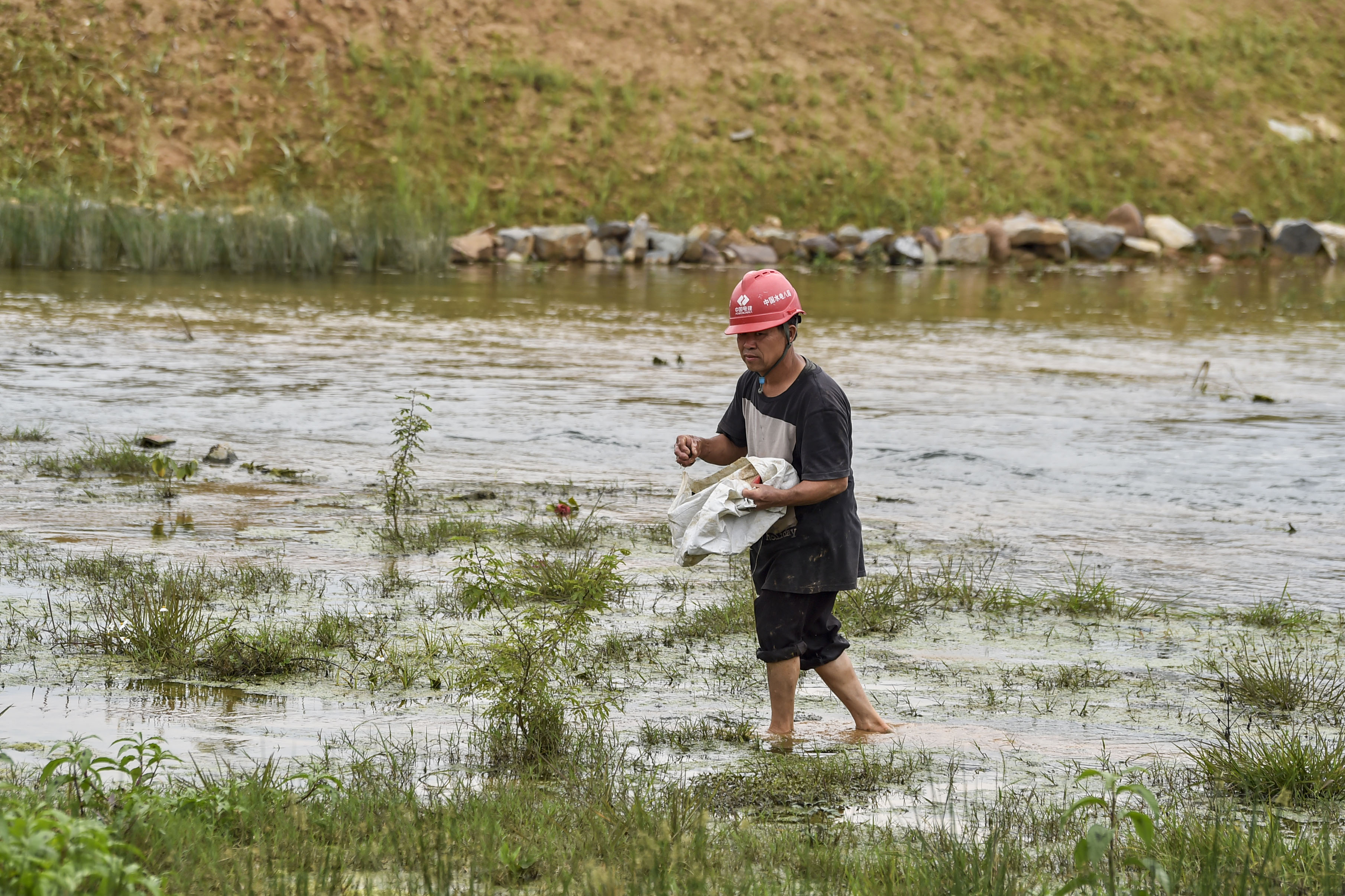 新华社照片,南宁,2022年3月12日 让过鱼通道“活”起来 3月11日,工人在清理大藤峡水利枢纽工程南木江副坝仿生态过鱼通道内的杂物。 建设中的大藤峡水利枢纽工程位于广西桂平市,是国务院确定的172项节水供水重大水利工程之一。 目前,大藤峡水利枢纽工程为保证鱼类正常洄游和繁殖而建造的南木江副坝仿生态过鱼通道已正式投入使用。技术人员和工人们也通过采取持续性水质监测、鱼类保育研究、完善周边绿化等措施,让过鱼通道真正“活”起来,发挥出应有的生态效益。 新华社记者 曹祎铭 摄