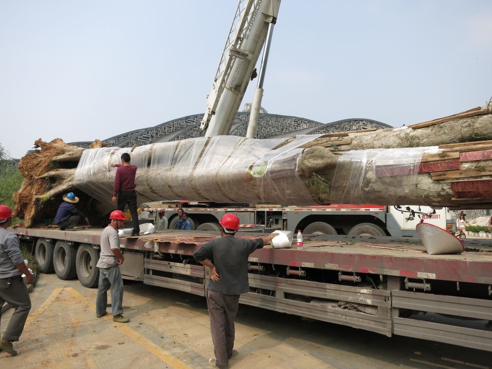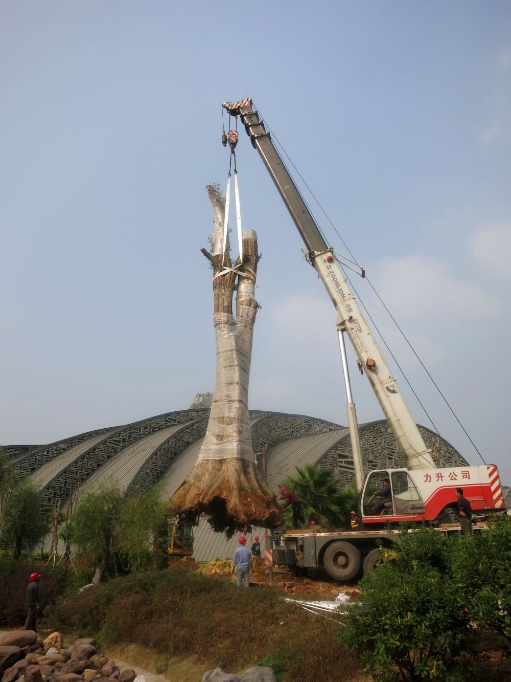 2013年柳州市园林工作人员移栽“树王”。(柳州市林业和园林局供图)
