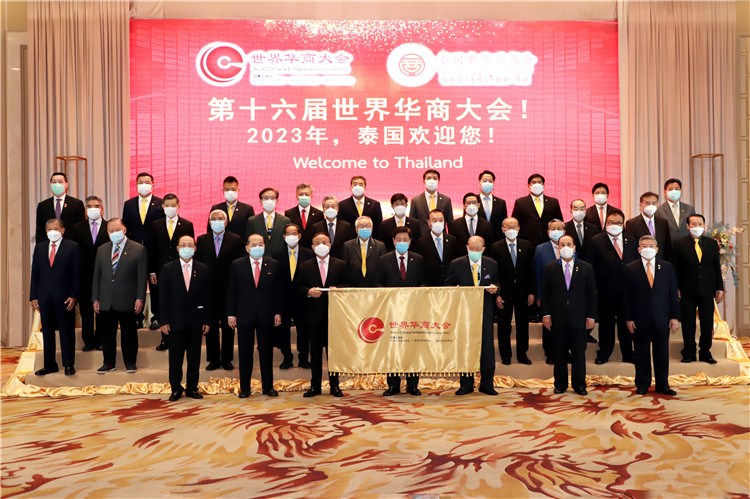 第16届世界华商大会将由泰国中华总商会于2023年5月在泰国曼谷举办。泰国中华总商会主席林楚钦在会旗交接仪式上发表致词,并播放了泰国中华总商会宣传推介视频,向全球华商发出邀请“2023年,泰国欢迎您!”。