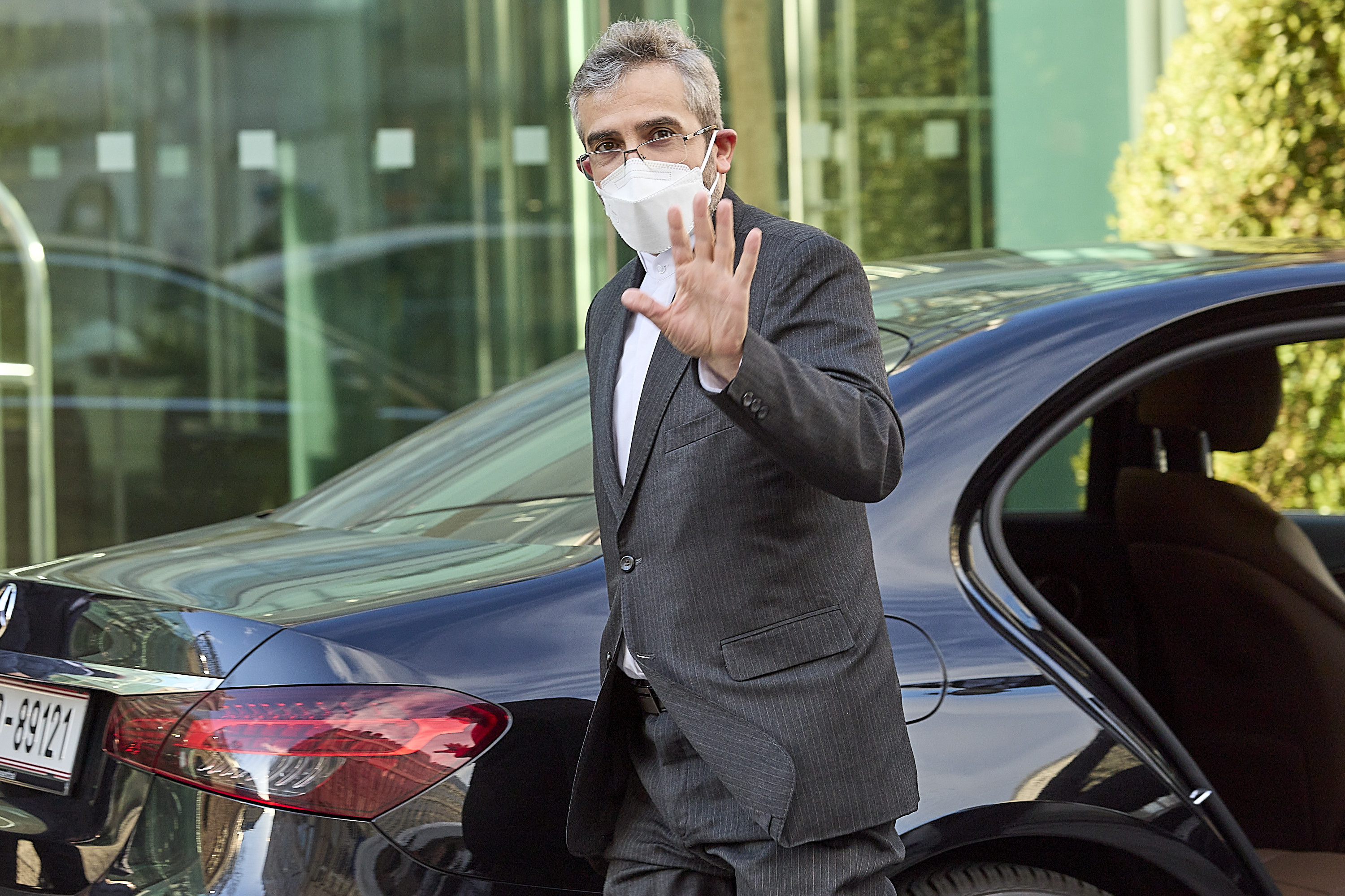 2月8日,在奥地利首都维也纳,伊朗副外长巴盖里准备进入伊核协议会谈会场。(新华社发,乔治斯·施耐德摄)
