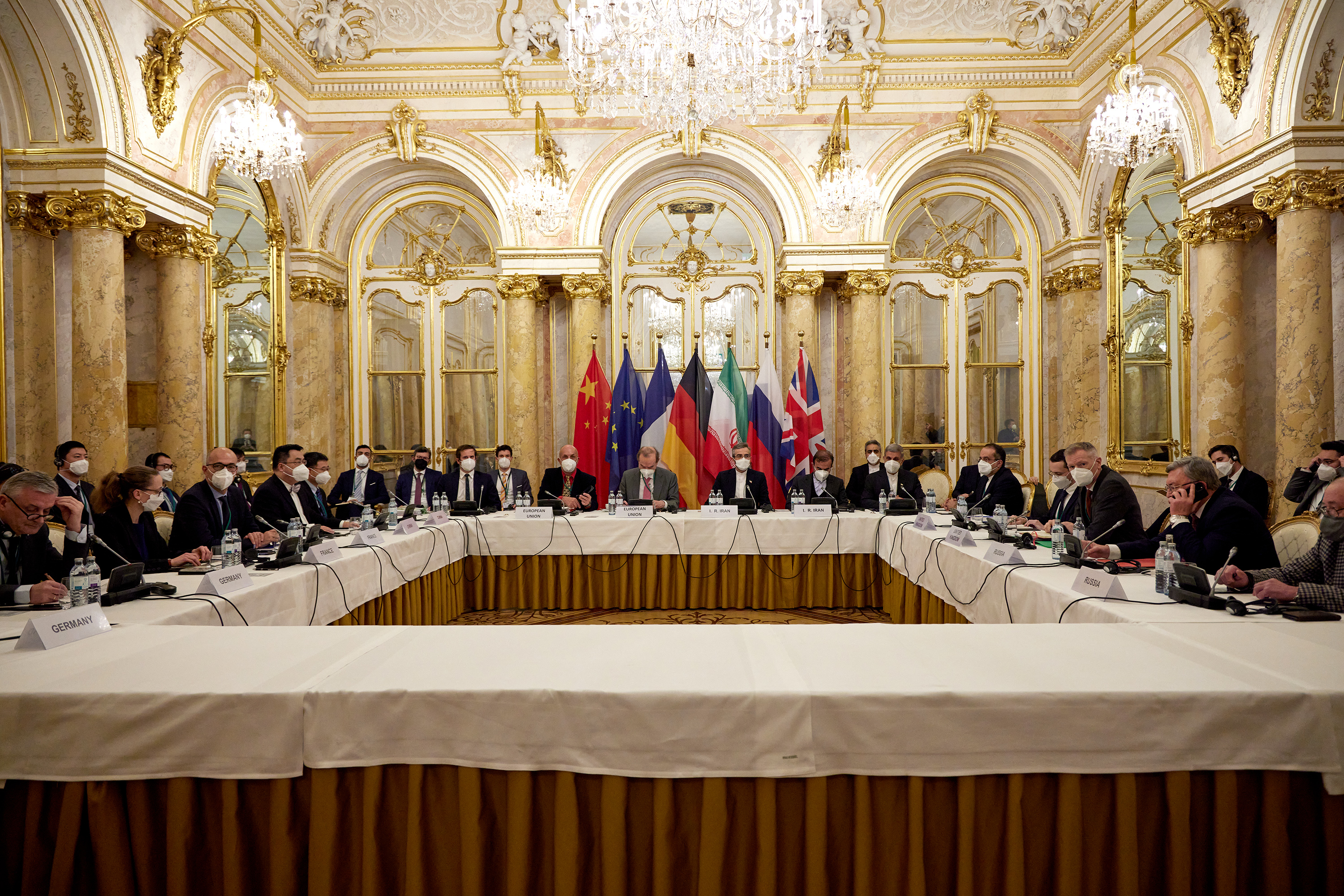 图为2021年12月27日在维也纳拍摄的伊朗核问题全面协议联合委员会政治总司长级会议现场。(新华社发,欧盟驻维也纳代表团供图)