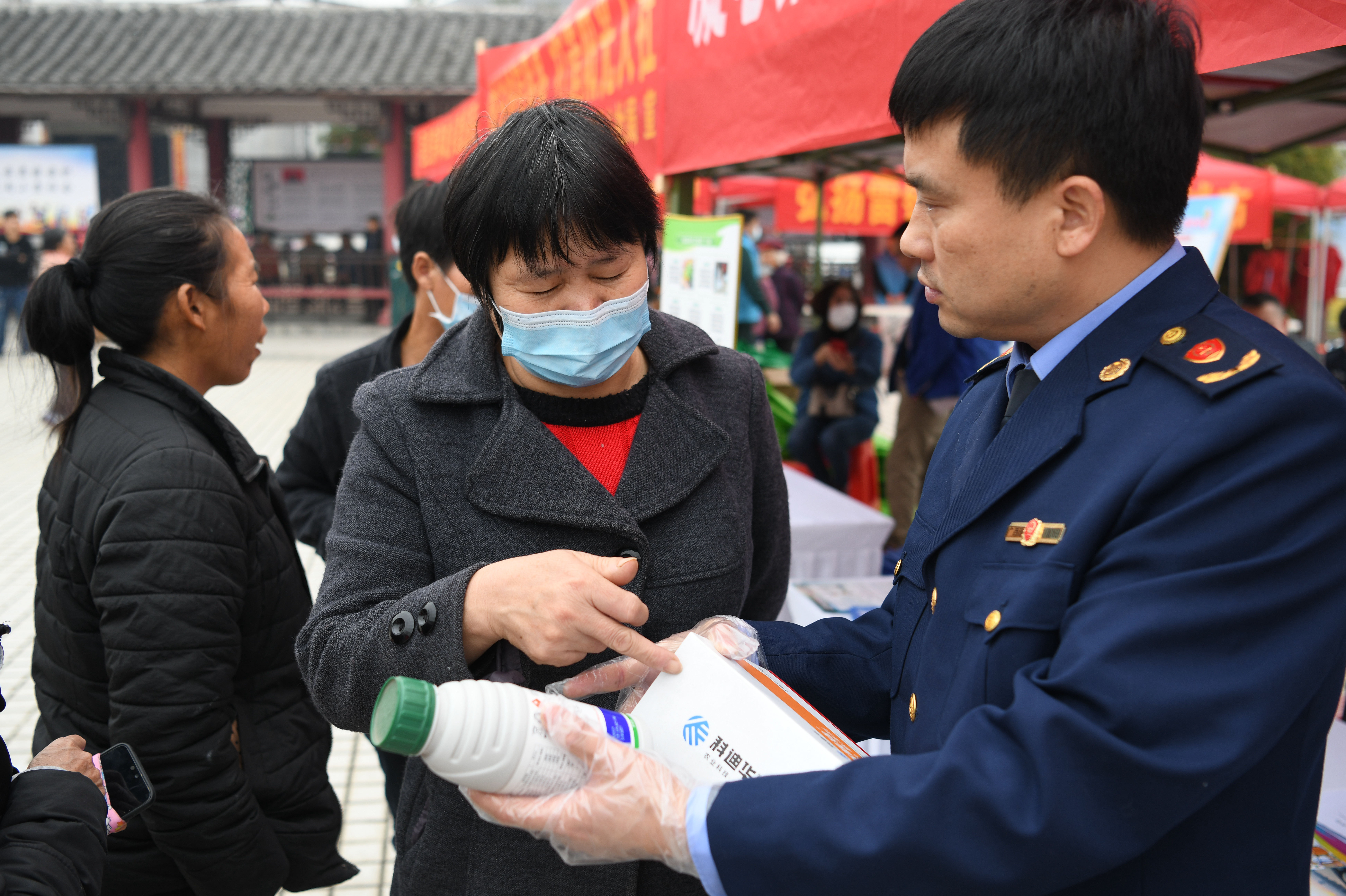 新华社照片,柳城(广西),2022年3月12日 广西柳城:乡村振兴 代表先行 3月11日,在广西柳城县古砦仫佬族自治乡,“治理有效”服务队成员向当地群众传授辨别真假农资知识。 3月11日,广西柳州市柳城县的县、乡两级人大代表组织成立“产业兴旺”“生态宜居”“乡风文明”“治理有效”“生活富裕”等16个服务队,发挥部分人大代表是乡村发展能人、产业大户和科技人才优势,挖掘当地资源禀赋,引领广大群众全方位改善生产生活条件,助力乡村振兴。 新华社记者 张爱林 摄