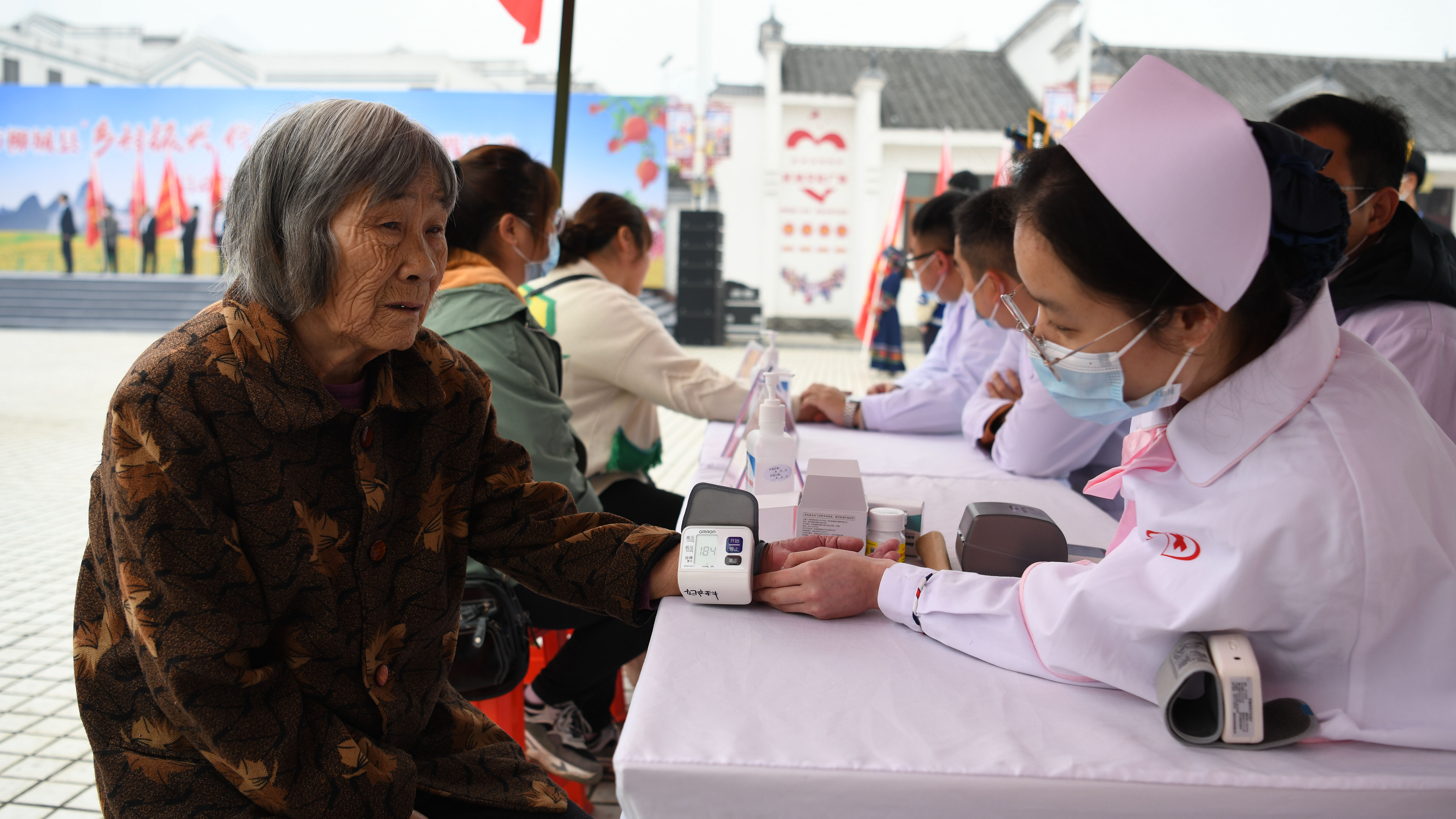 新华社照片,柳城(广西),2022年3月12日 广西柳城:乡村振兴 代表先行 3月11日,在广西柳城县古砦仫佬族自治乡,“治理有效”服务队成员在义诊。 3月11日,广西柳州市柳城县的县、乡两级人大代表组织成立“产业兴旺”“生态宜居”“乡风文明”“治理有效”“生活富裕”等16个服务队,发挥部分人大代表是乡村发展能人、产业大户和科技人才优势,挖掘当地资源禀赋,引领广大群众全方位改善生产生活条件,助力乡村振兴。 新华社记者 张爱林 摄