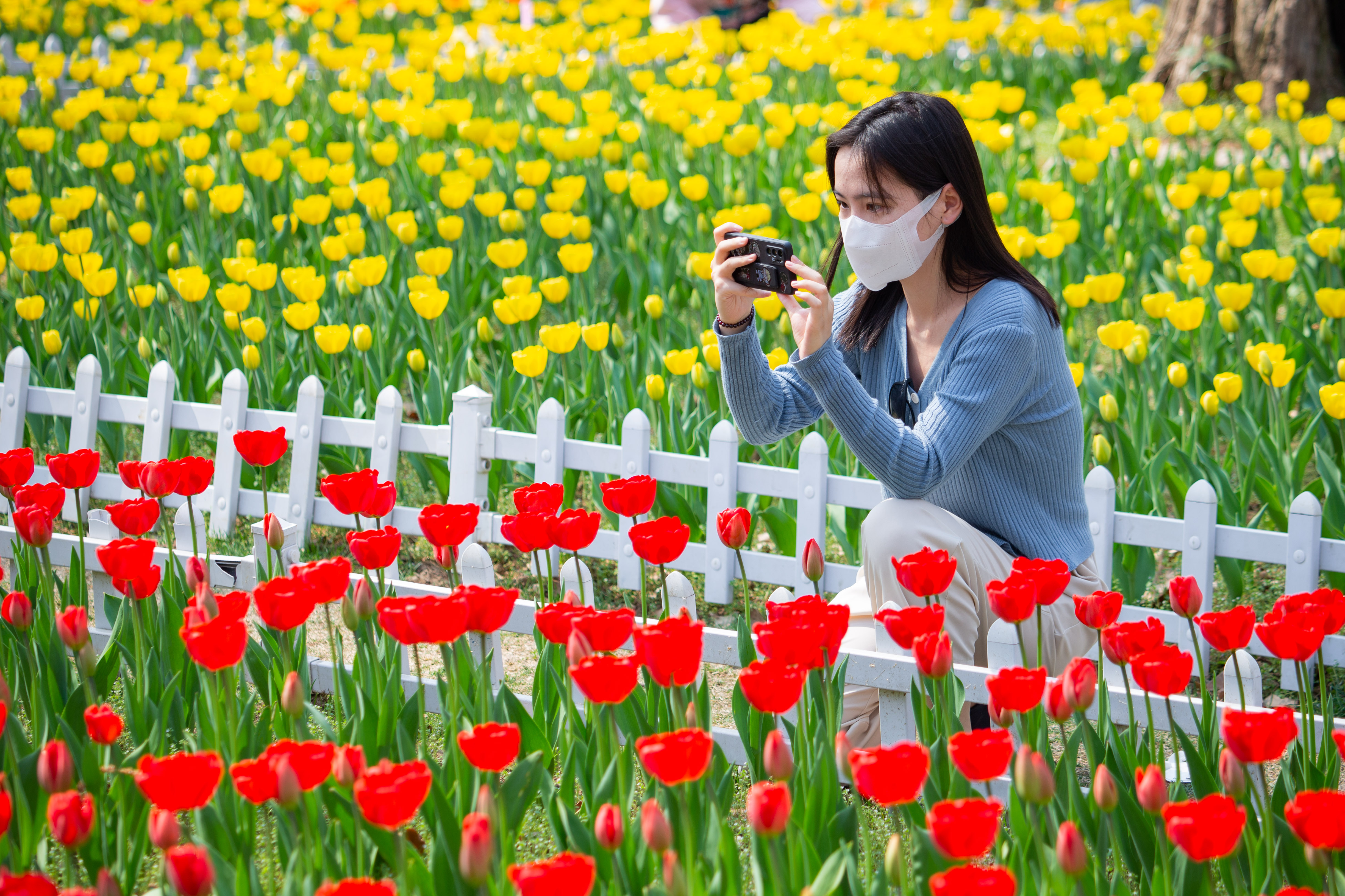 新华社照片,南京,2022年3月12日 花开春色美 3月12日,游人在南京中山植物园赏花拍照。 眼下,南方各地春意盎然,繁花似锦。 新华社发(苏阳摄)