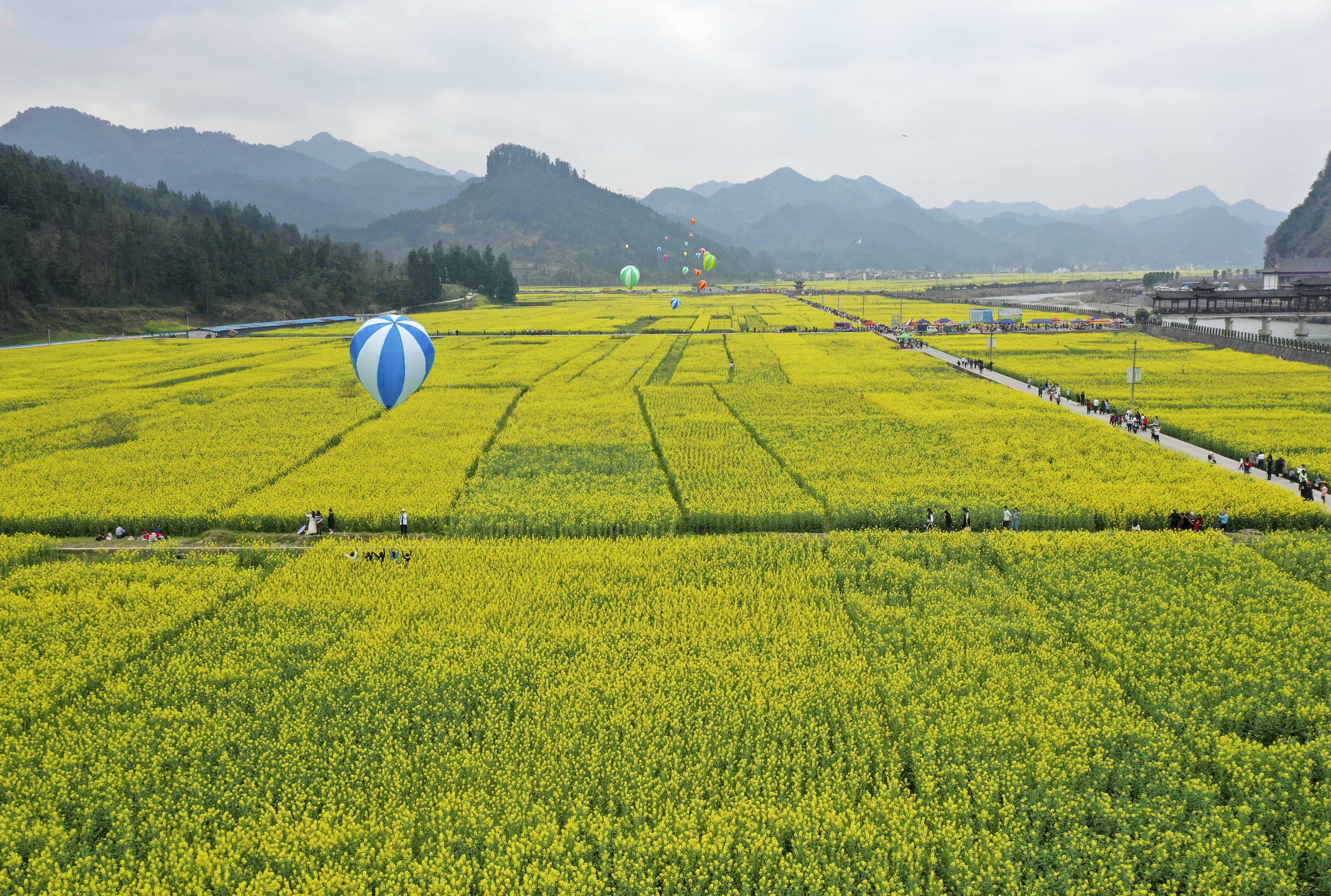 新华社照片,铜仁(贵州),2022年3月12日 花开春色美 3月12日拍摄的贵州省铜仁市碧江区瓦屋乡油菜花田景色(无人机照片)。 眼下,南方各地春意盎然,繁花似锦。 新华社发(尹刚摄)