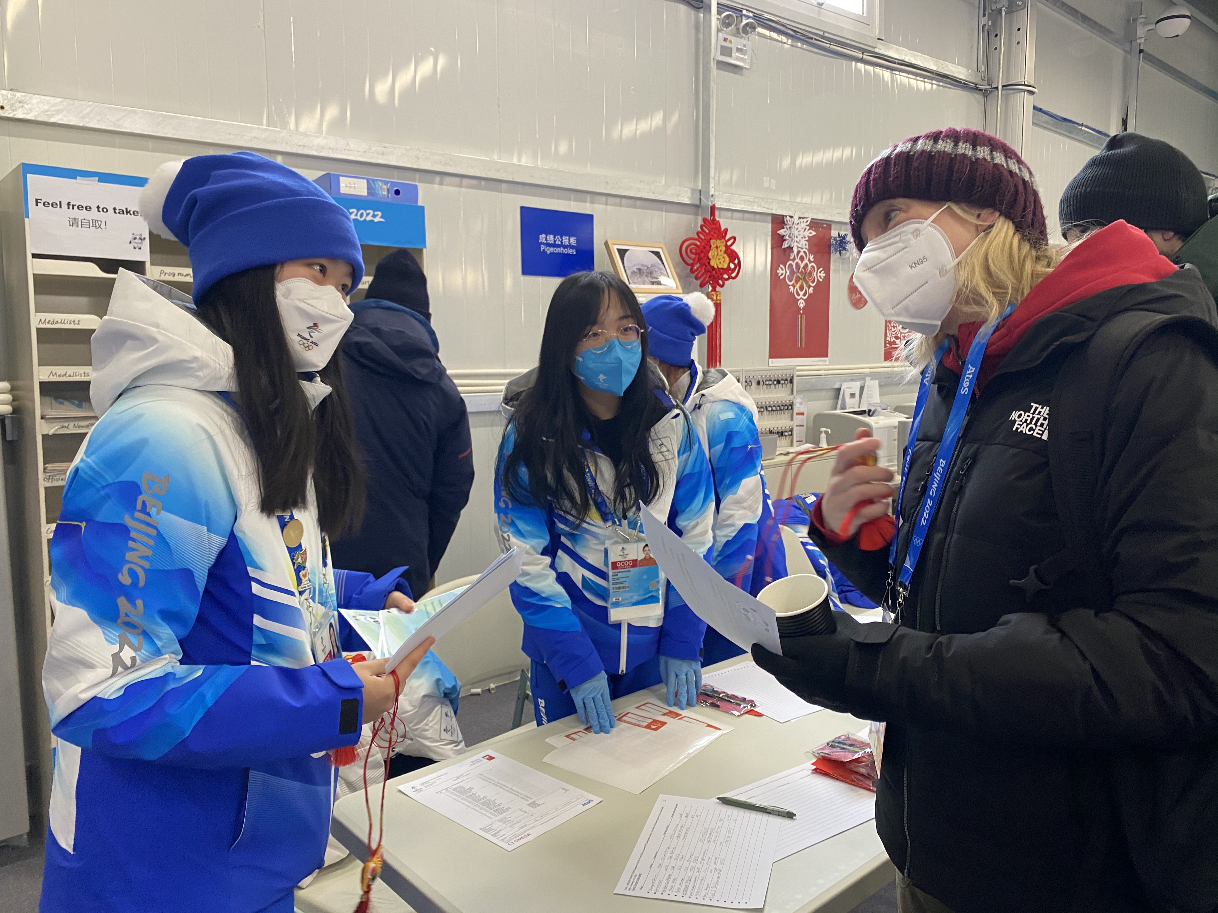 从最开始的环境布置、设施完善,到春节元宵节为媒体赠送文创小老虎、福字、窗花,再到冬残奥期间坐着轮椅走流线、试设施,他们站在媒体视角,盯紧每一个细节。