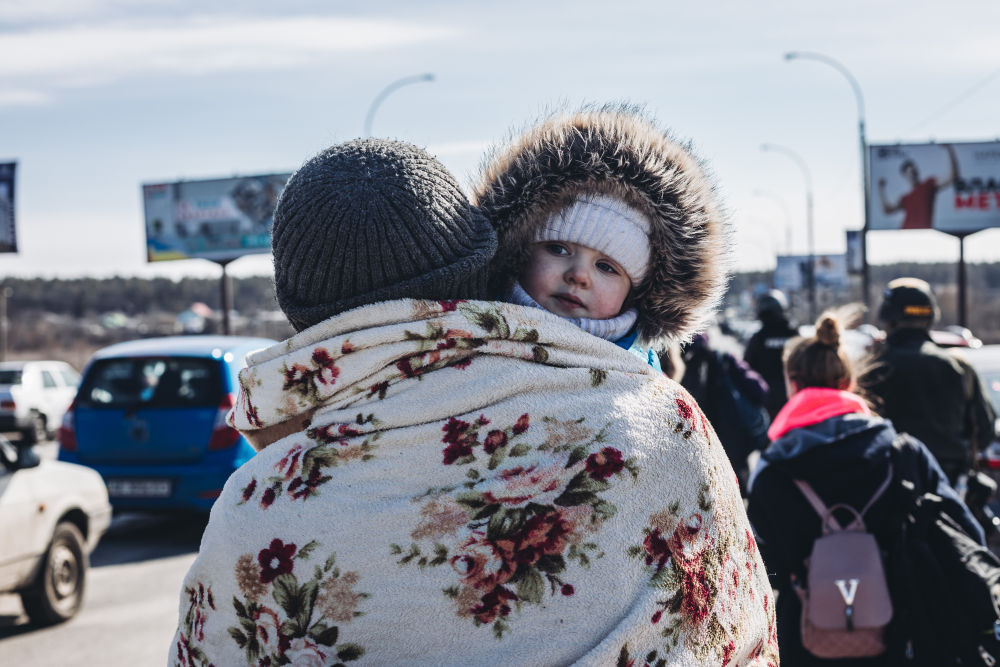 ↑3月11日,人们在乌克兰基辅州伊尔平通过人道主义通道撤离。新华社发(迭戈·埃雷拉 摄)