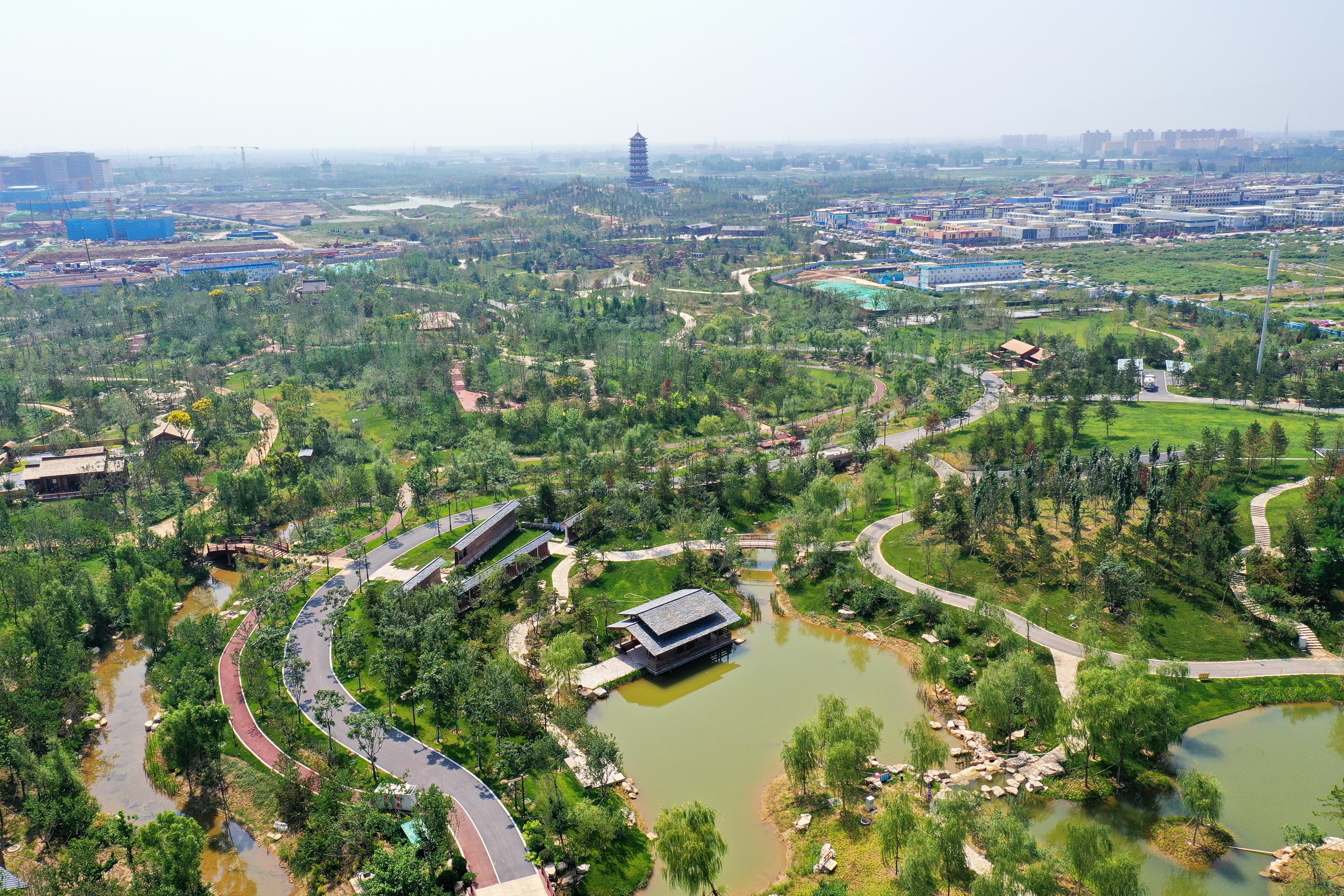 新华社照片,雄安(河北),2022年3月13日 从“深圳速度”到“雄安质量”——雄安新区建设一线采访记 这是雄安新区悦容公园北苑内的景色(2021年9月1日摄,无人机照片)。 (配本社同题文字稿) 新华社记者 牟宇 摄