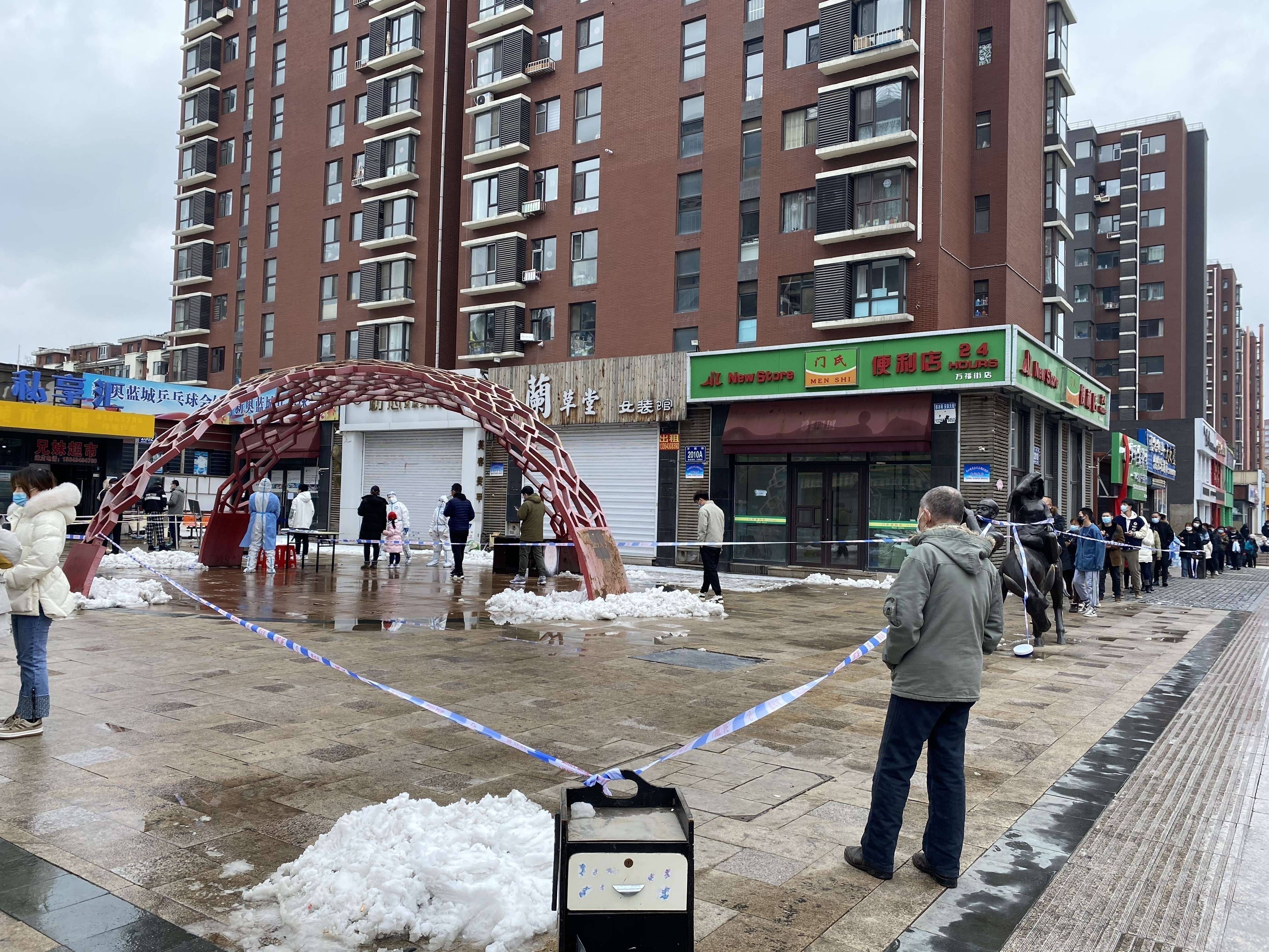 在核酸检测点现场,派出工作人员和志愿者维护秩序。为保证核酸检测现场不聚集,防止市民排队时间过长,大多数小区都采取了分楼栋、分时间段的方式,通过微信群、大喇叭等及时通知市民下楼采集核酸,还针对行动不便市民上门检测,最大程度方便群众,做到应检尽检,不漏一户、不落一人。