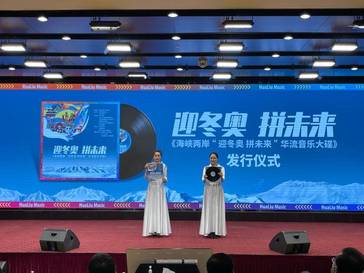 13日活动现场举行了“冬奥大碟”黑胶纪念大碟发行+线下发布会,两岸青年音乐人共同演唱入选大碟的多首原创音乐作品。