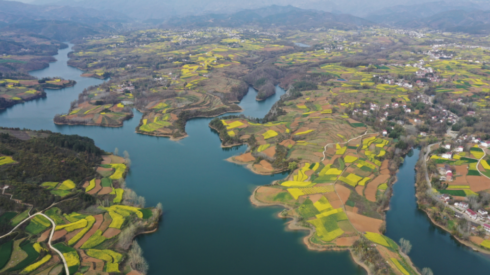 ▲陕西汉中市洋县拍摄的油菜花景观(无人机拍摄)。新华社发 罗汉涛 摄