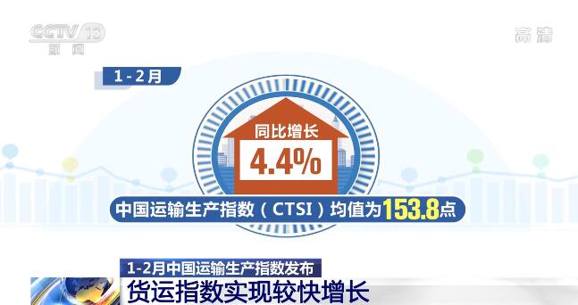 央视网消息:交通运输部科学研究院今天(3月14日)发布1—2月中国运输生产指数。数据显示,今年前两个月货运指数实现较快增长。