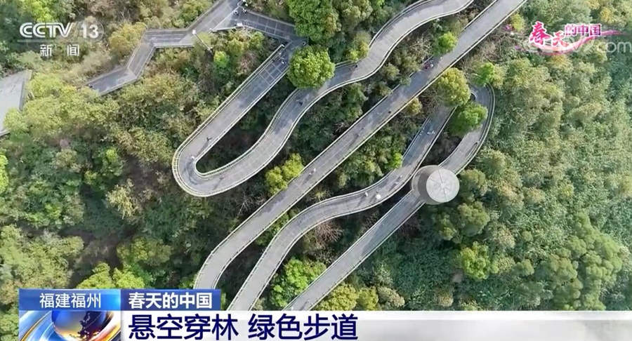 现在我们看到的是位于福建福州中心城区的空中森林步道,全长19公里,横贯了福州境内的象山、梅峰山、金牛山等多座山体,将城市中心的五大公园串联起来,是一个既可以登高览城又能休闲健身的好去处。