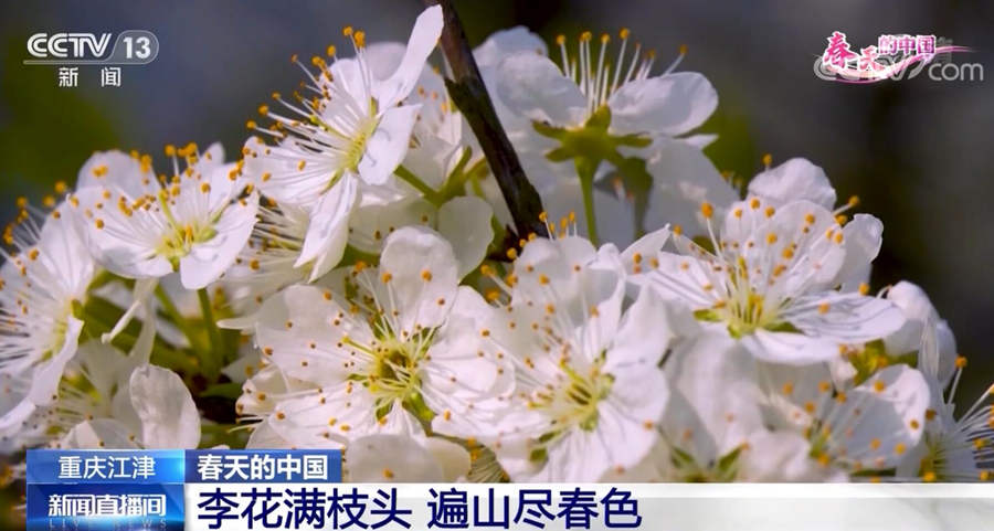跟随镜头,我们来到重庆江津区黑滩村,这里的千亩李花正开满枝头。花蕊争相生长,花瓣尽情舒展,远观如满树雪霜,近赏又清新淡雅。漫山春花芬芳动人,吸引游客纷至沓来。