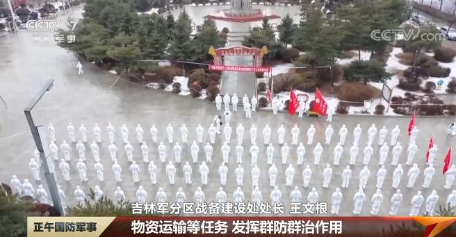 吉林军分区战备建设处处长 王文根:我们积极动员新质力量和基干民兵,采取集中调配、小群多路方式,承担场所消毒、设卡劝导、物资运输等任务,发挥群防群治作用。