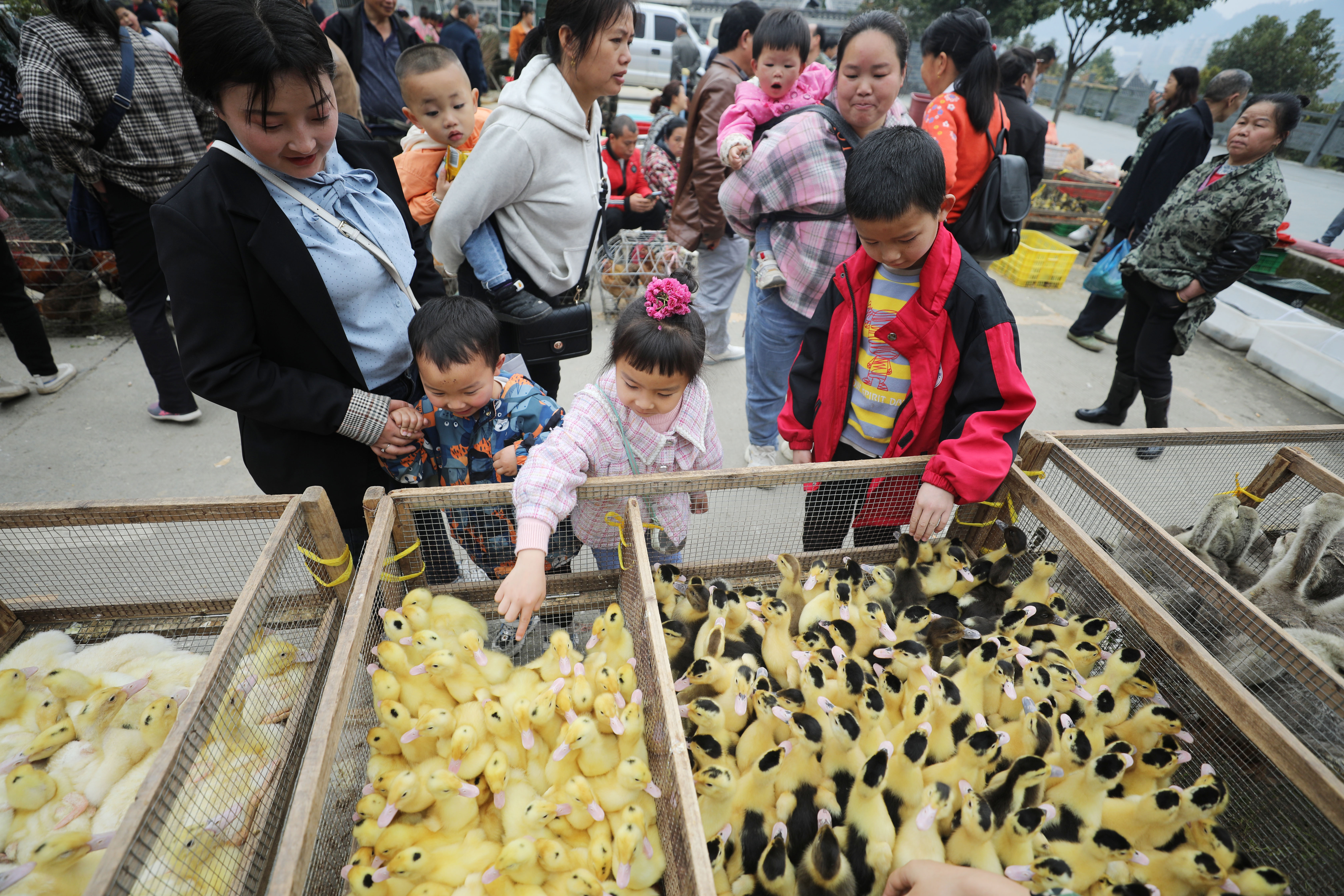 新华社照片,锦屏(贵州),2022年3月14日 春天里的集市 3月12日,人们在贵州省锦屏县三江镇集市上选购禽苗。 大地回春,又是春忙时节。无论在田间地头,还是乡镇市集,各种充满乡土气息的集市热闹了起来,卖种苗、卖农具、卖鸡苗……四面八方的人们前来赶集,带来满满的人间烟火气。 新华社发(杨晓海 摄)