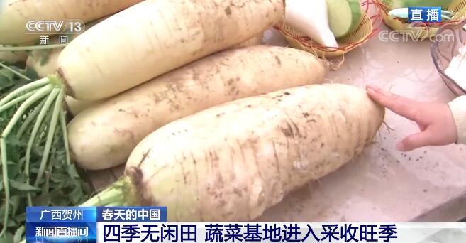央视网消息:广西贺州有着悠久的蔬菜种植历史,眼下,贺州的春耕备耕陆续开始,而热火朝天的春收景象也在同时进行。总台记者廖汨现在就在贺州市八步区的一个蔬菜种植基地,那里的村民正在忙着采收蔬菜。我们来连线廖汨,请她介绍一下当地的蔬菜种植以及采收情况。