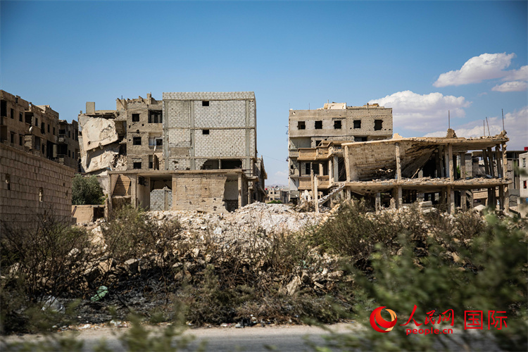 | 叙利亚首都大马士革市郊被战争损毁的建筑。人民网 薛丹摄 |