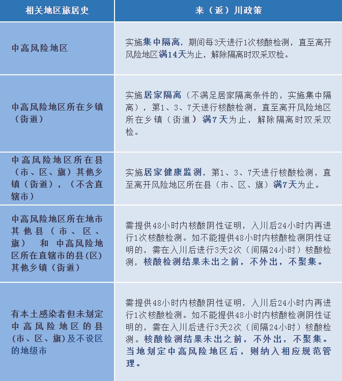 省外来(返)川人员(特别是从近14天内有阳性感染者的地市来返川人员),请在24小时内尽快做一次核酸检测。
