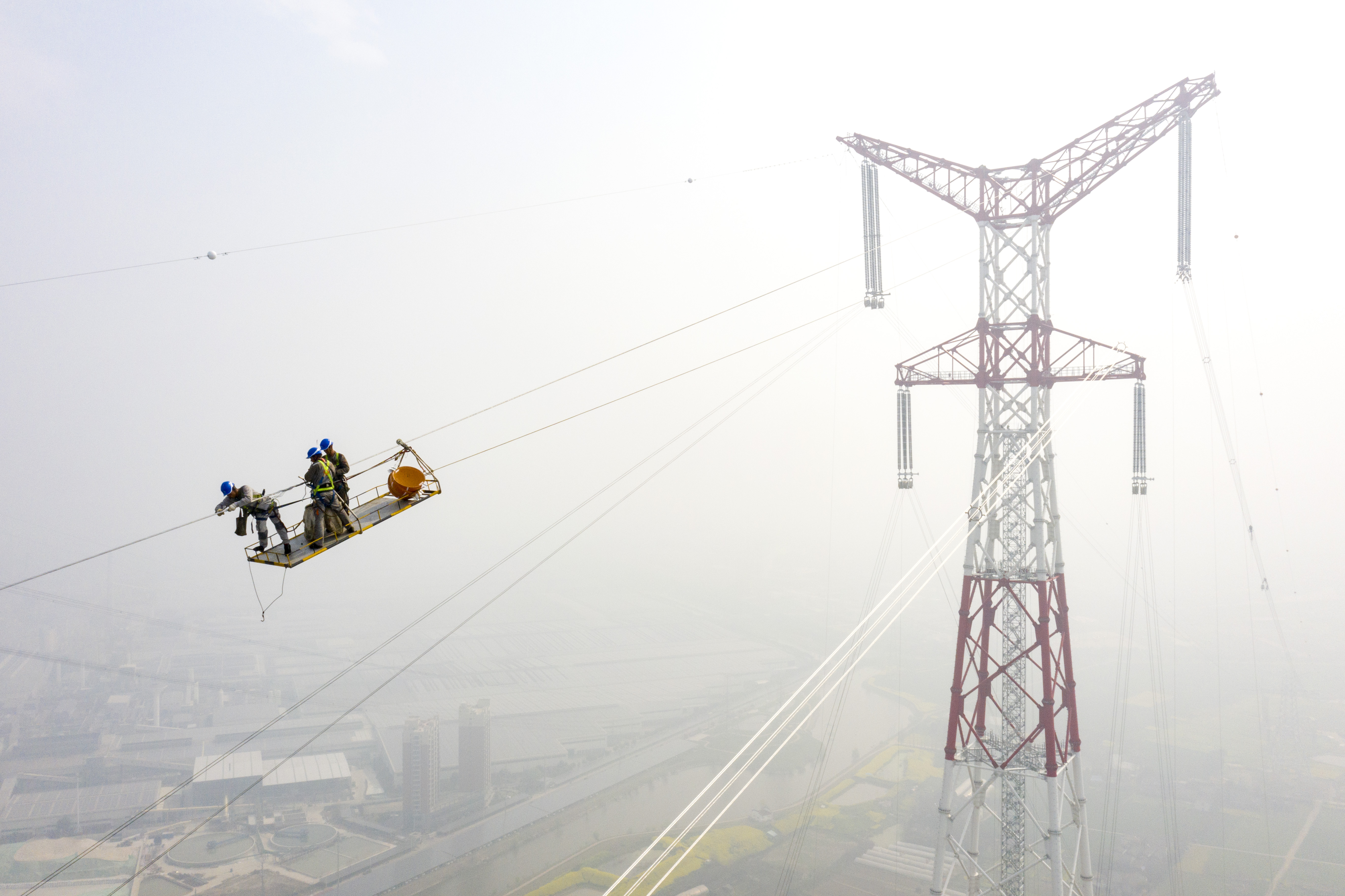新华社照片,芜湖(安徽),2022年3月14日 特高压“白江线”安徽段长江大跨越线路贯通 3月14日,在安徽芜湖的长江边,安徽送变电工程有限公司施工人员在高空进行特高压输电线路跨江作业(无人机照片)。 3月14日,白鹤滩—江苏±800千伏特高压直流输电工程安徽段跨越长江放线工程完成最后6根导线的展放,标志着特高压“白江线”安徽段长江大跨越线路贯通。 白鹤滩—江苏±800千伏特高压直流输电工程是我国“西电东送”战略的重点工程,是促进国家能源结构调整和节能减排的清洁能源项目。工程投运后,每年输送电力将超过312亿千瓦时。 新华社记者陈尚营摄