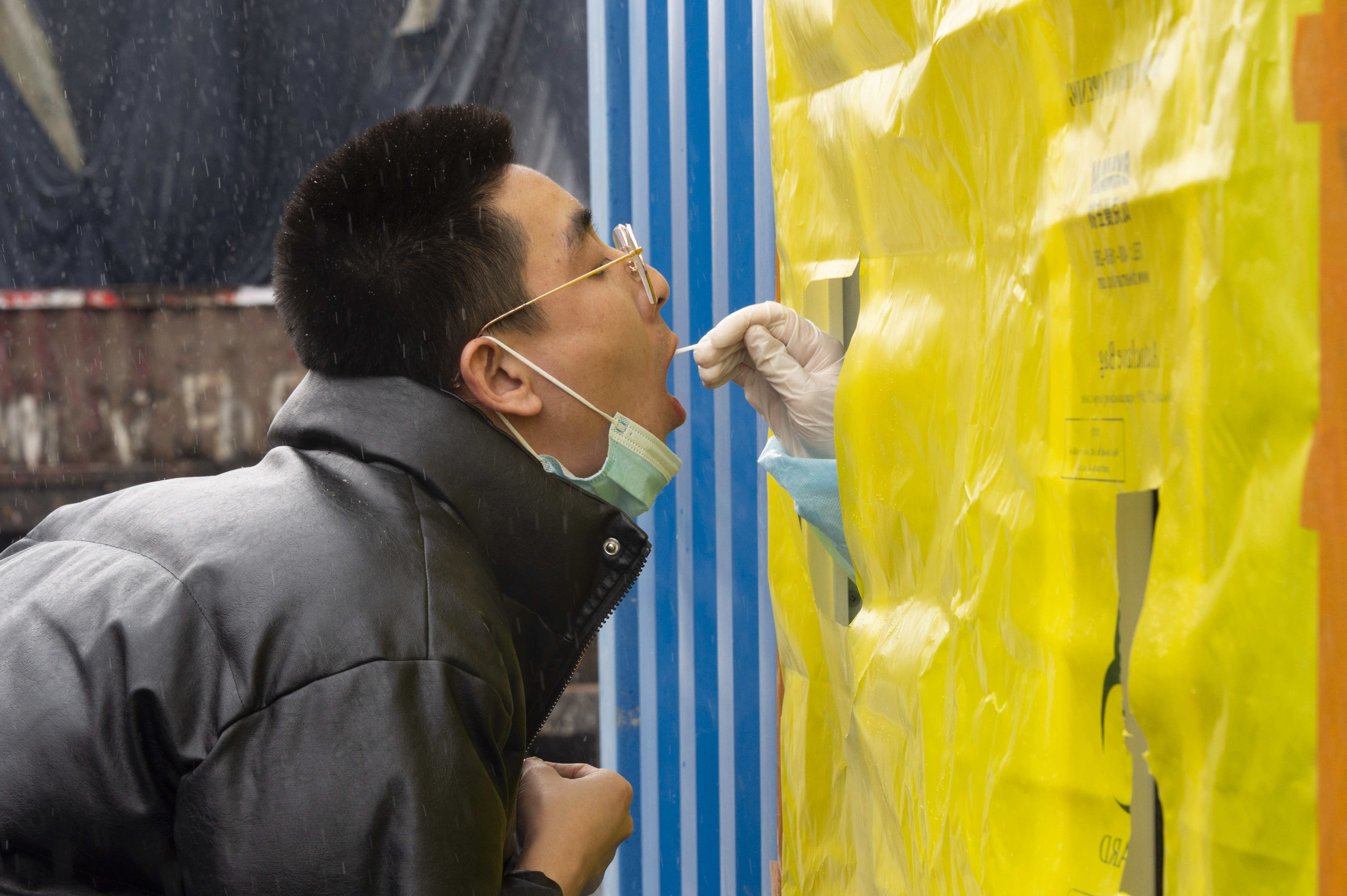 新华社照片,哈尔滨,2022年3月14日 哈尔滨:抵返哈人员实行“落地即检” 3月14日,在哈尔滨绕城高速公路长江路收费站入口一临时核酸采样点,抵返哈人员接受核酸采样。 3月13日,哈尔滨市应对新冠肺炎疫情工作指挥部发布紧急通知,自3月14日6时起,对抵返哈人员实行“落地即检”的排查管控措施。 抵返哈人员,除需持有48小时内核酸检测阴性证明外,抵达各交通场站或公路卡口时要配合查验健康码、行程史和旅居史,并立即进行一次核酸检测(公路卡口只对省外和省内边境口岸县市抵返哈人员进行检测),即检即走,无需等待核酸检测结果。 新华社记者 谢剑飞 摄