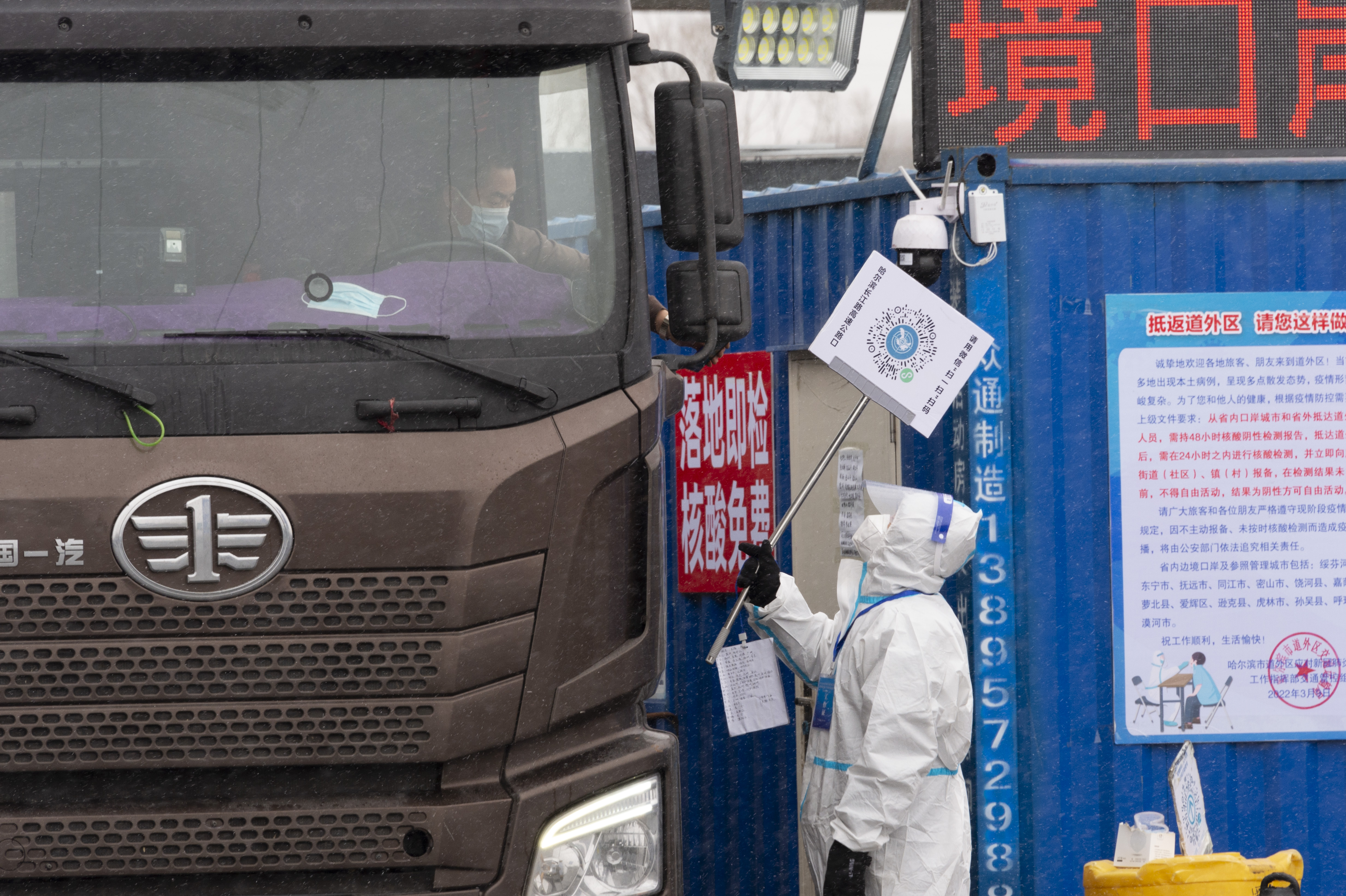 新华社照片,哈尔滨,2022年3月14日 哈尔滨:抵返哈人员实行“落地即检” 3月14日,在哈尔滨绕城高速公路长江路收费站入口,工作人员对抵返哈人员进行查验。 3月13日,哈尔滨市应对新冠肺炎疫情工作指挥部发布紧急通知,自3月14日6时起,对抵返哈人员实行“落地即检”的排查管控措施。 抵返哈人员,除需持有48小时内核酸检测阴性证明外,抵达各交通场站或公路卡口时要配合查验健康码、行程史和旅居史,并立即进行一次核酸检测(公路卡口只对省外和省内边境口岸县市抵返哈人员进行检测),即检即走,无需等待核酸检测结果。 新华社记者 谢剑飞 摄