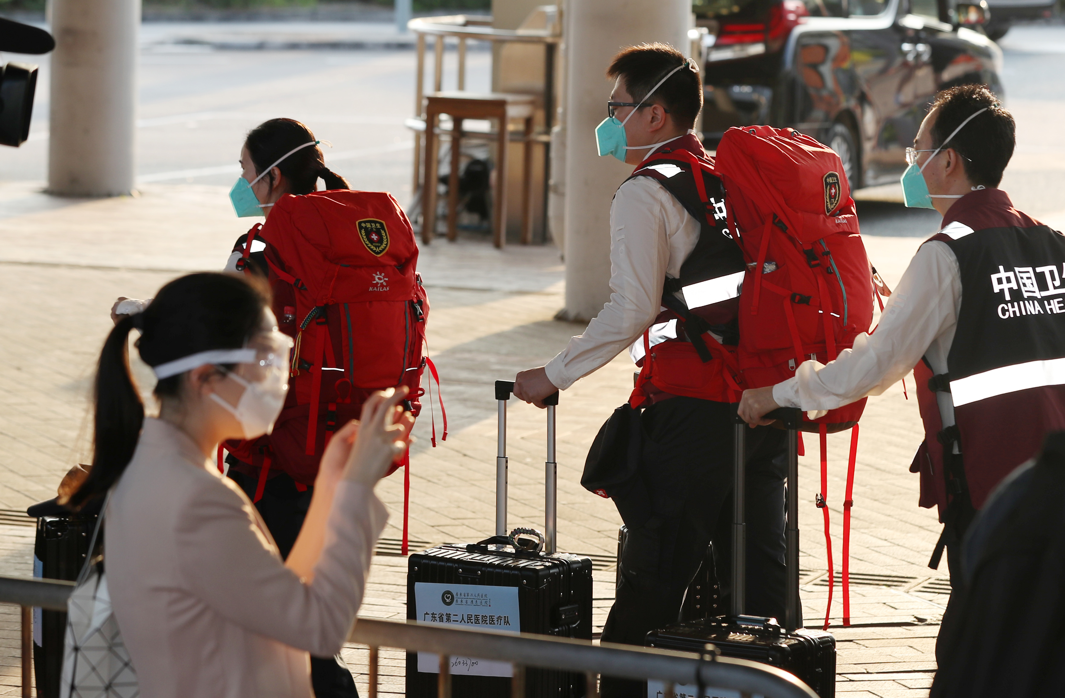(港澳台·图文互动)(5)75名内地援港医疗队员抵达香港