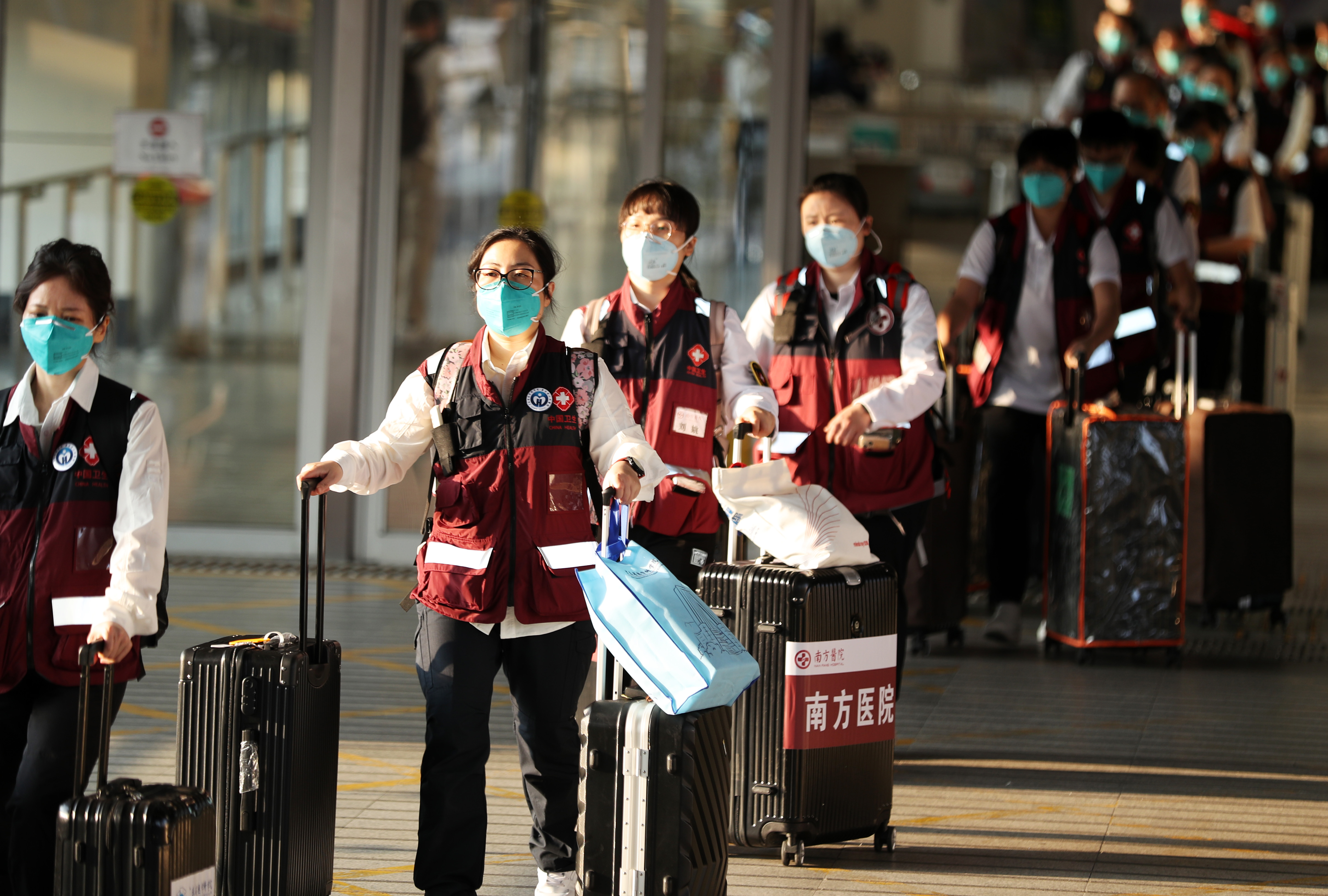 (港澳台·图文互动)(3)75名内地援港医疗队员抵达香港