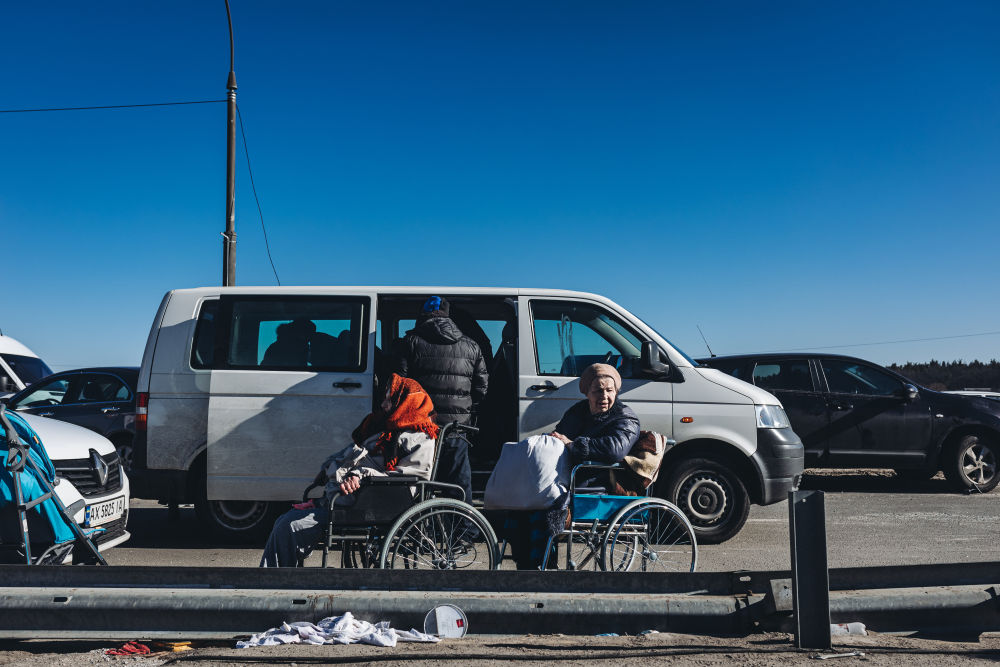 3月11日,两名老人在乌克兰基辅州伊尔平等待撤离。新华社发(迭戈·埃雷拉 摄)