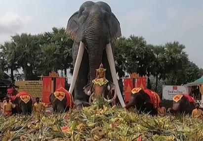 ·泰国一地给57头大象办水果盛宴,庆祝一年一度的“大象日”。